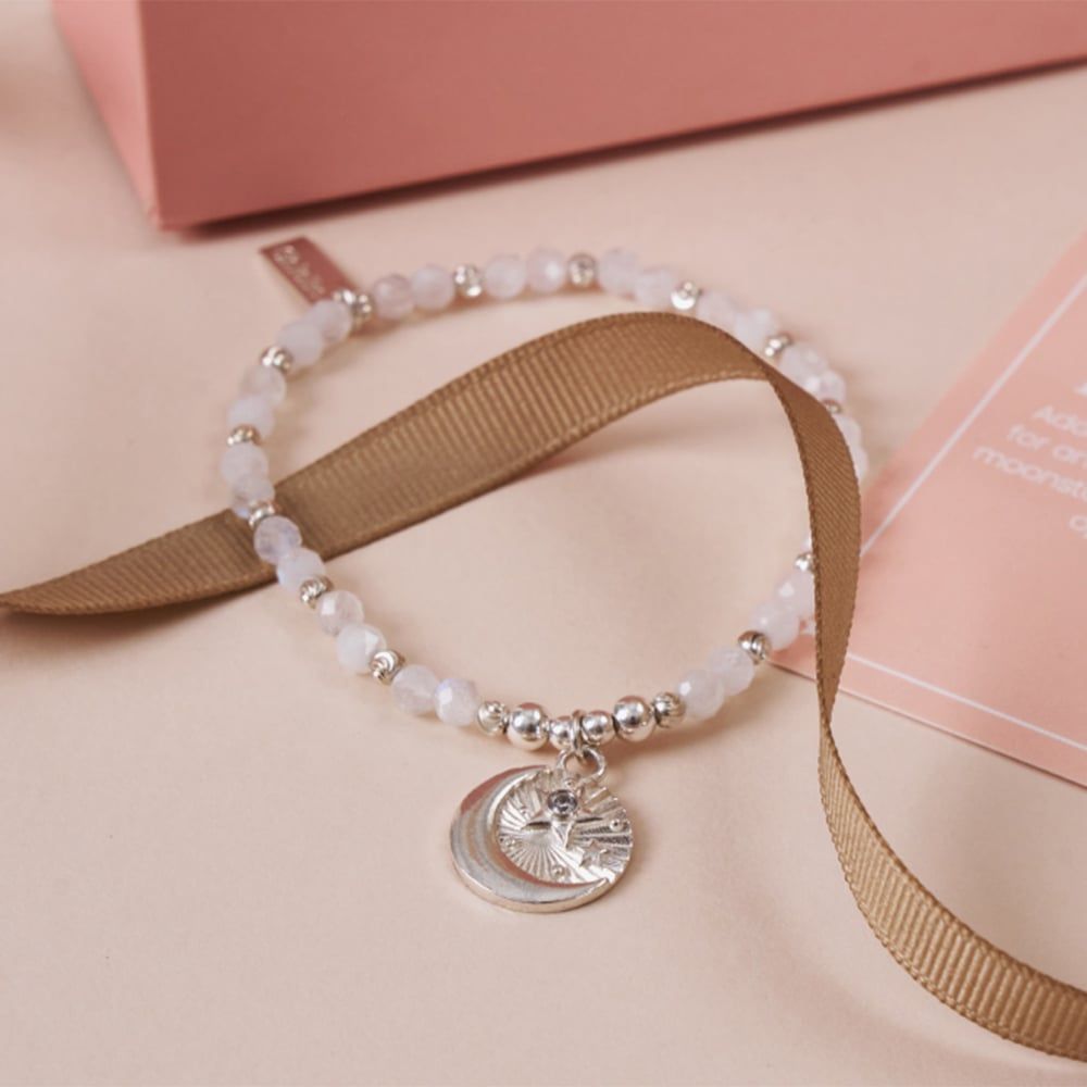 The ChloBo Ecliptic Aura Bracelet, elegantly crafted with semi-precious Moonstone, symbolizes new beginnings and invites positive energy. This meaningful piece is designed to inspire fresh starts and embrace new opportunities in the year ahead, making it a perfect companion for any journey.