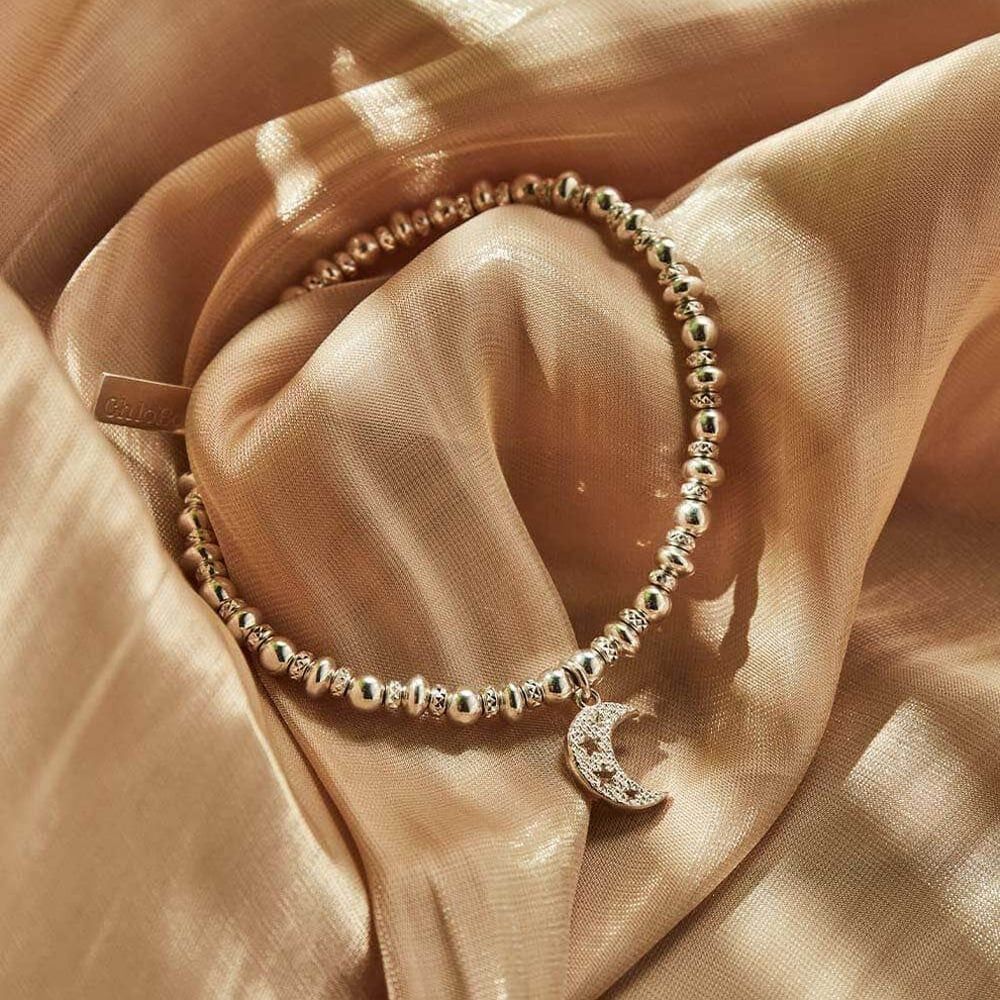 The ChloBo Ladies Silver Didi Sparkle Starry Moon Bracelet is a captivating piece inspired by the magic of the night sky. Handcrafted from sterling silver, this bracelet features a delicate arrangement of sparkling beads that add a touch of subtle shimmer to any outfit. The design is highlighted by a beautiful crescent moon charm, symbolising intuition, growth, and the ever-changing phases of life. Whether worn alone or stacked with other ChloBo favourites, the Didi Sparkle Starry Moon Bracelet is a thoughtful and stylish choice, perfect for those who love jewellery with meaning and elegance.