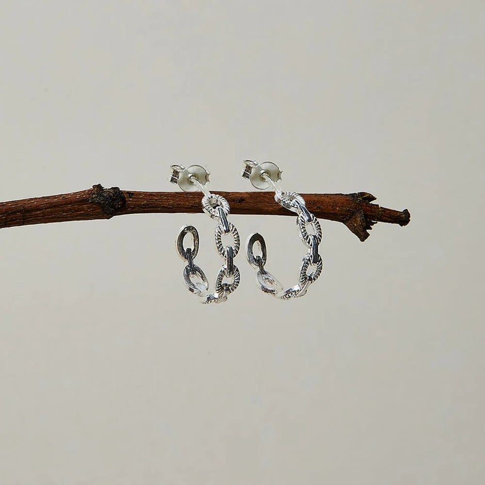 Enhance your everyday style with these striking sterling silver Figaro Chain Huggie Hoops. Featuring bold, interlocking links, they symbolize the resilience and strength of women. These intricate hoops are a perfect tribute to your own power and confidence.