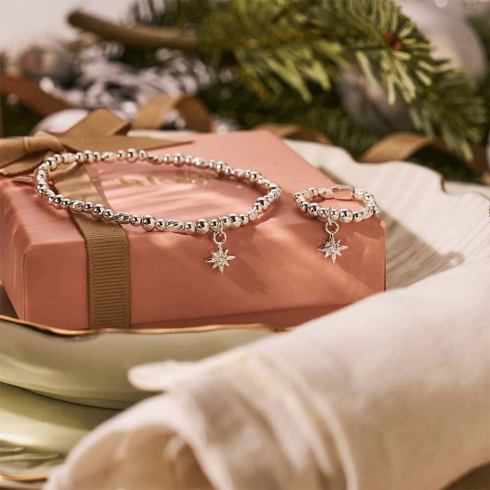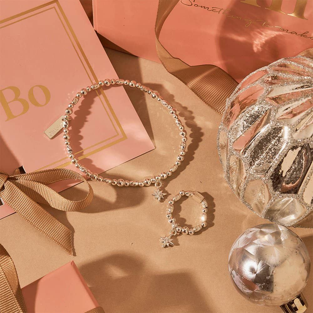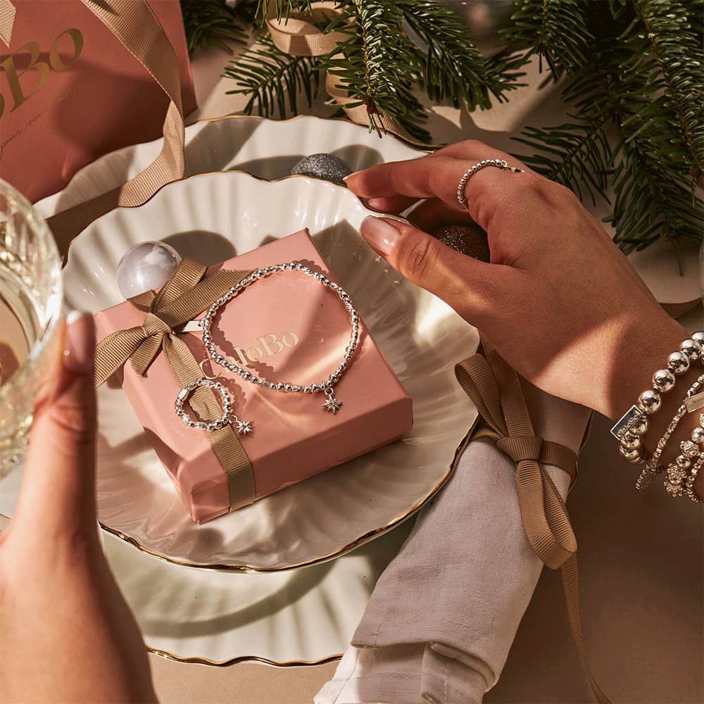Celebrate the magic of the season with the ChloBo Christmas bracelet and ring set, meticulously crafted from lustrous 925 sterling silver beads. Delicately strung with the essence of holiday cheer, these pieces capture the festive spirit, each bead embodying the joy and warmth of the holidays.