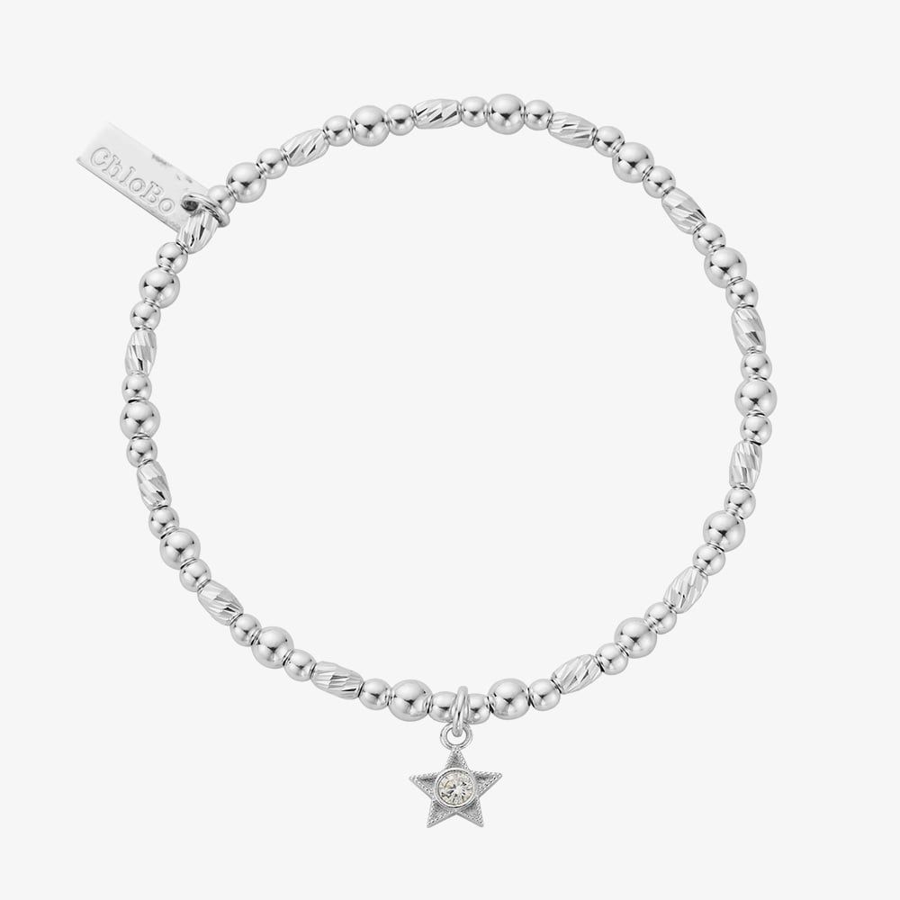 Elevate your style with this stunning sterling silver bracelet from ChloBo’s Birthstones Collection. The iconic beaded bracelet design has a sentimental addition of a dazzling diamond star charm, symbolising clarity, energy amplification and focus. A thoughtful touch for those born in April, this bracelet is a meaningful gift to celebrate love, identity and personal connection, can be worn alone or stacked for a truly personal look.