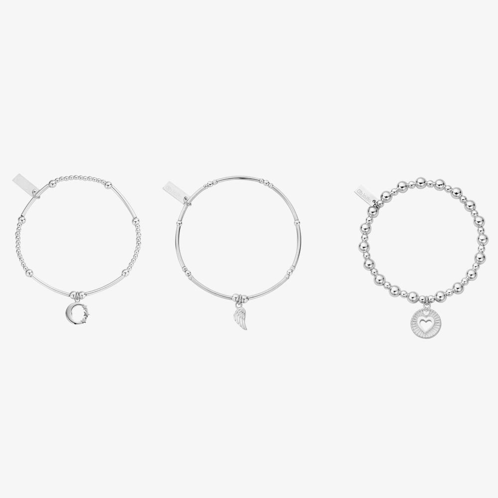Find the ultimate Christmas gift for a ChloBo collector with the ChloBo Stacking Christmas Cracker. A soulful trio of sterling silver stacking bracelets, each bracelet has been handpicked to blend every day style with lasting meaning. A mix of beaded and noodle and ball bracelets feature motifs of love, moon and stars and an angel wing; worn separately for their own meanings or together for a harmonious expression of dreams and strength. A perfectly wrapped gift for a love one, or an extra special treat for yourself this Christmas.
