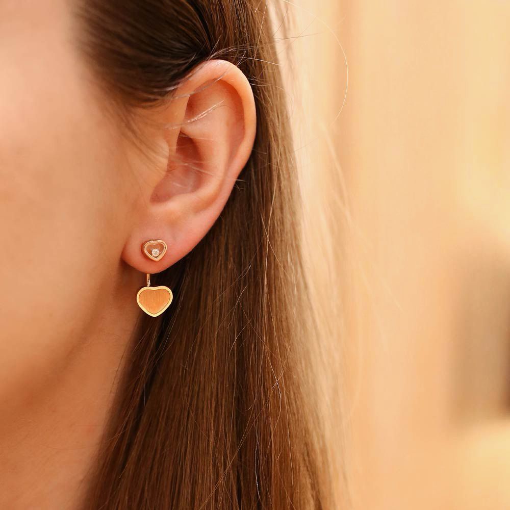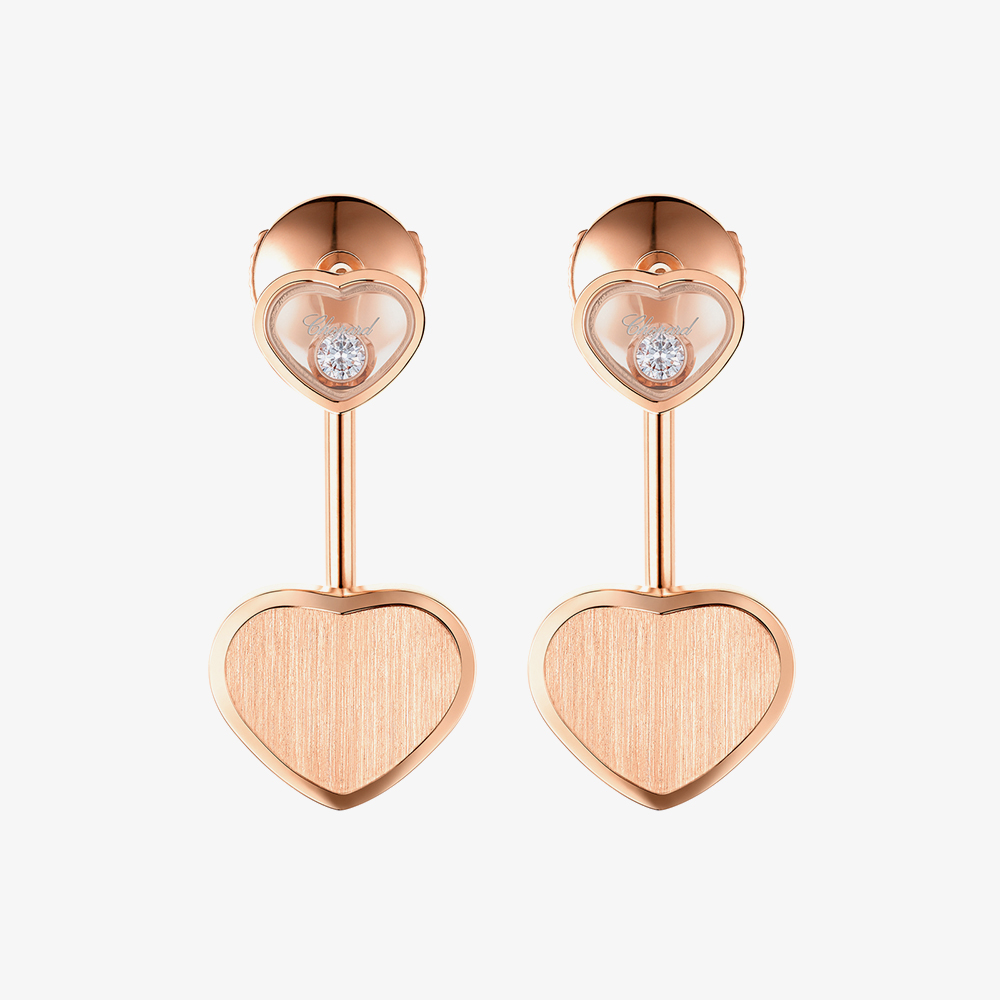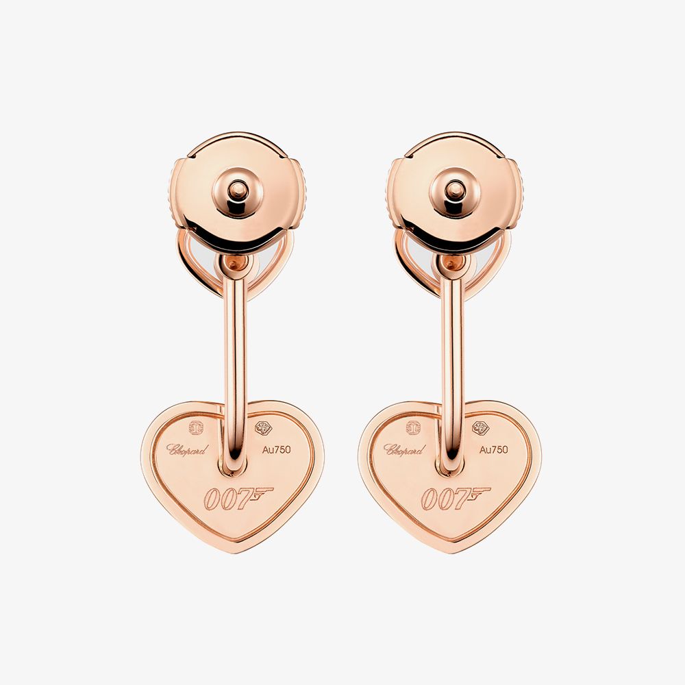 Inspired by the determination, courage and beauty of the James Bond woman, the 18ct Rose Gold Happy Hearts 007 Dropper Earrings are a must-have for anyone seeking individual style and elegance. Made from 18ct rose gold, these delicate-looking butterfly-back dropper earrings feature an 18ct rose gold heart pendant adorned by a smaller heart pendant embellished with a free moving diamond set between sapphire glass in the Chopard 'dancing diamond' style, giving the wearer 0.08ct of diamond sparkle. Featuring the official '007' logo on the back of the earrings, these stunning dropper earrings are a playful reimagination of the Happy Hearts jewellery line with a limited edition '007' twist, set to suit anyone. '007' is a trademark of Danjaq. LLC. All Rights Reserved.