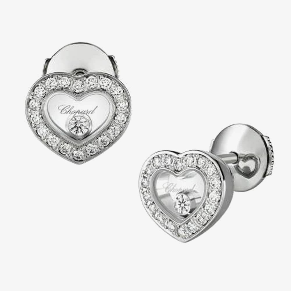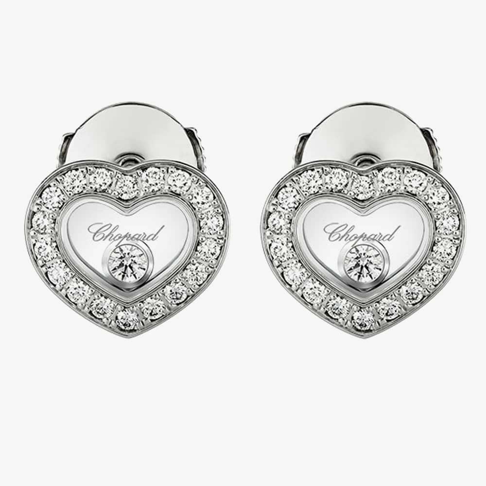 A beautifully styled pair of ladies earrings feature a diamond set heart shaped design. The sparkling heart shape houses two 0.10ct floating diamonds which will add an extra special eye catching detail to any evening outfit. Wear individually for a true statement or pair with matching items from the Happy Diamonds collection to complete your look.