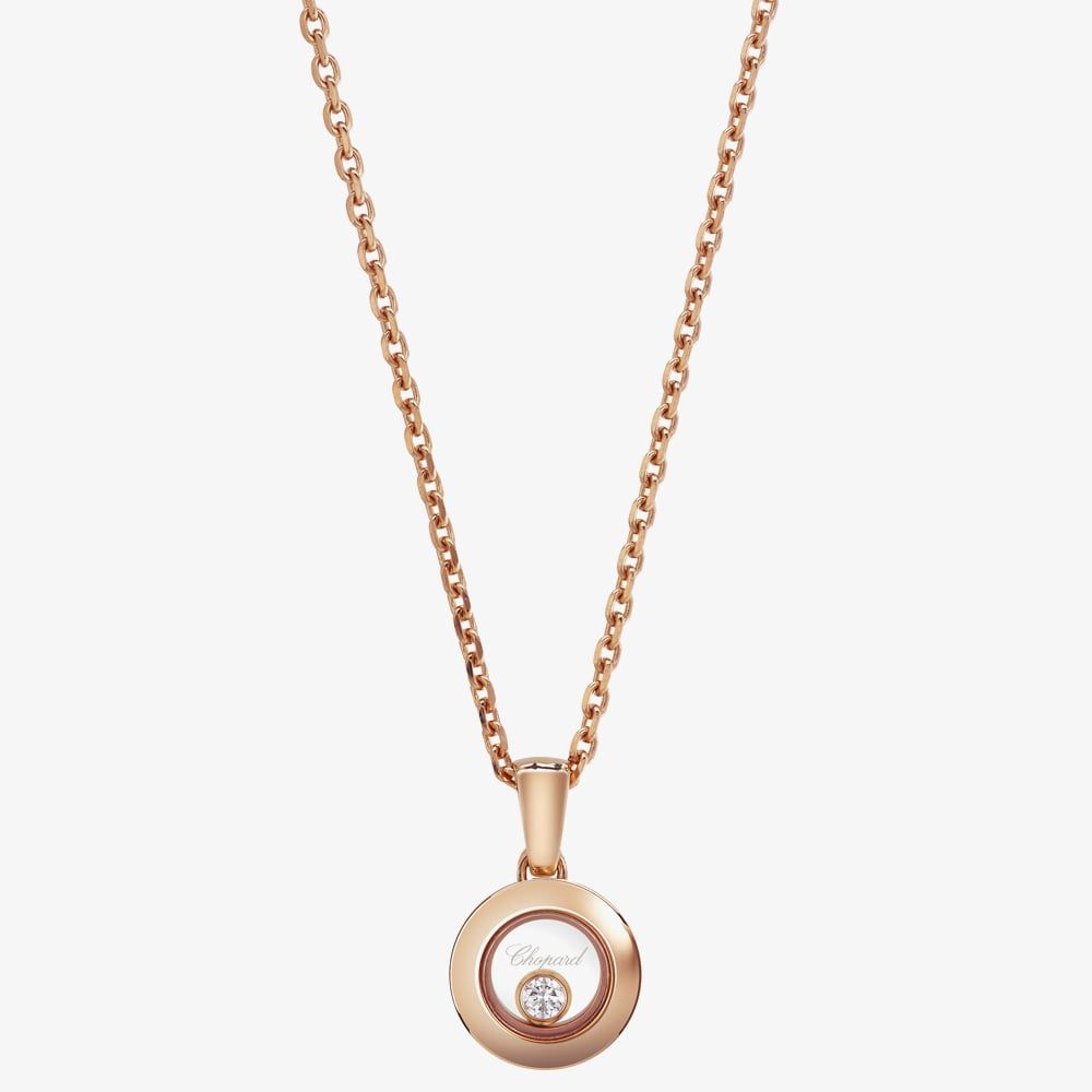 From the Happy Diamonds collection, this stunning Icons necklace crafted in 18ct rose gold and features a polished round pendant while beneath a is a free moving sparkling 0.05ct diamond set inside the crystal glass which is free to move around and dance under light. Beautifully finished with a delicate rose gold chain which is adjustable to suit comfort & style. Little Diamonds Do Great Things.