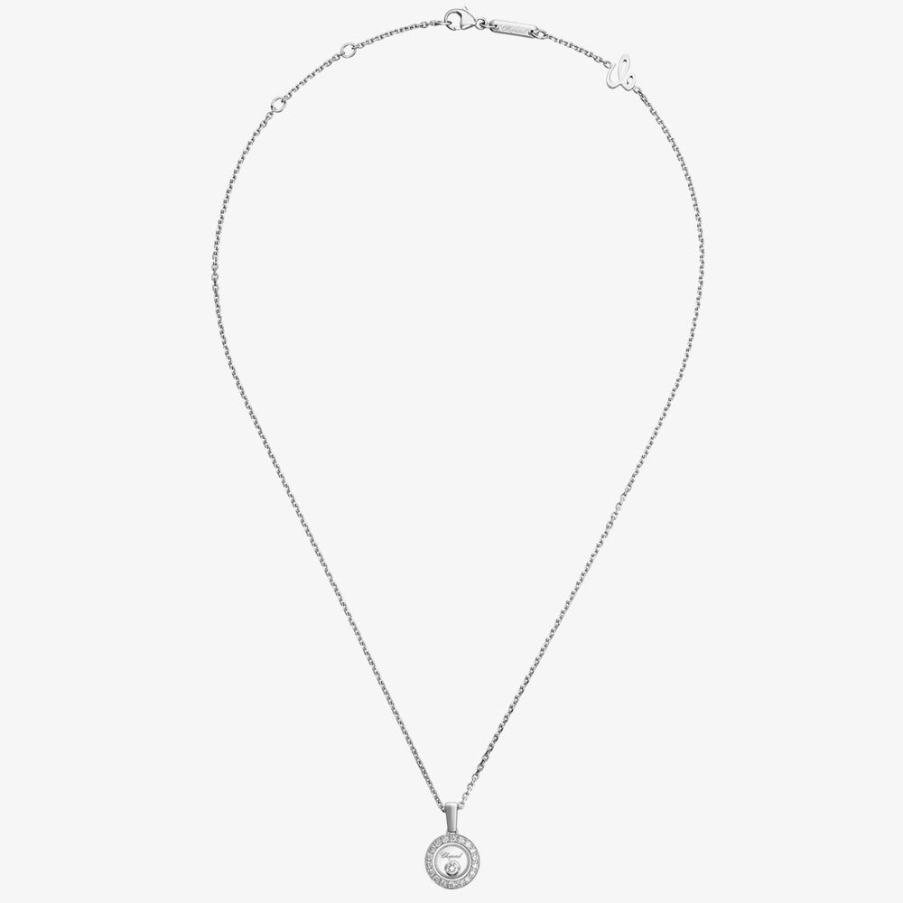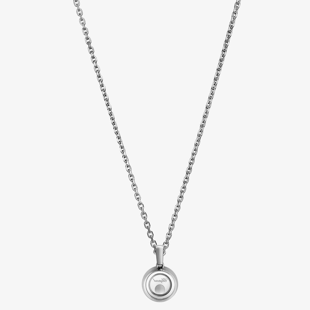From the Happy Diamonds collection, this stunning Icons necklace crafted in 18ct white gold and features a glistening diamond set round pendant while beneath a is a free moving sparkling 0.05ct diamond set inside the crystal glass which is free to move around and dance under light. Beautifully finished with a delicate white gold chain which is adjustable to suit comfort & style. Little Diamonds Do Great Things.