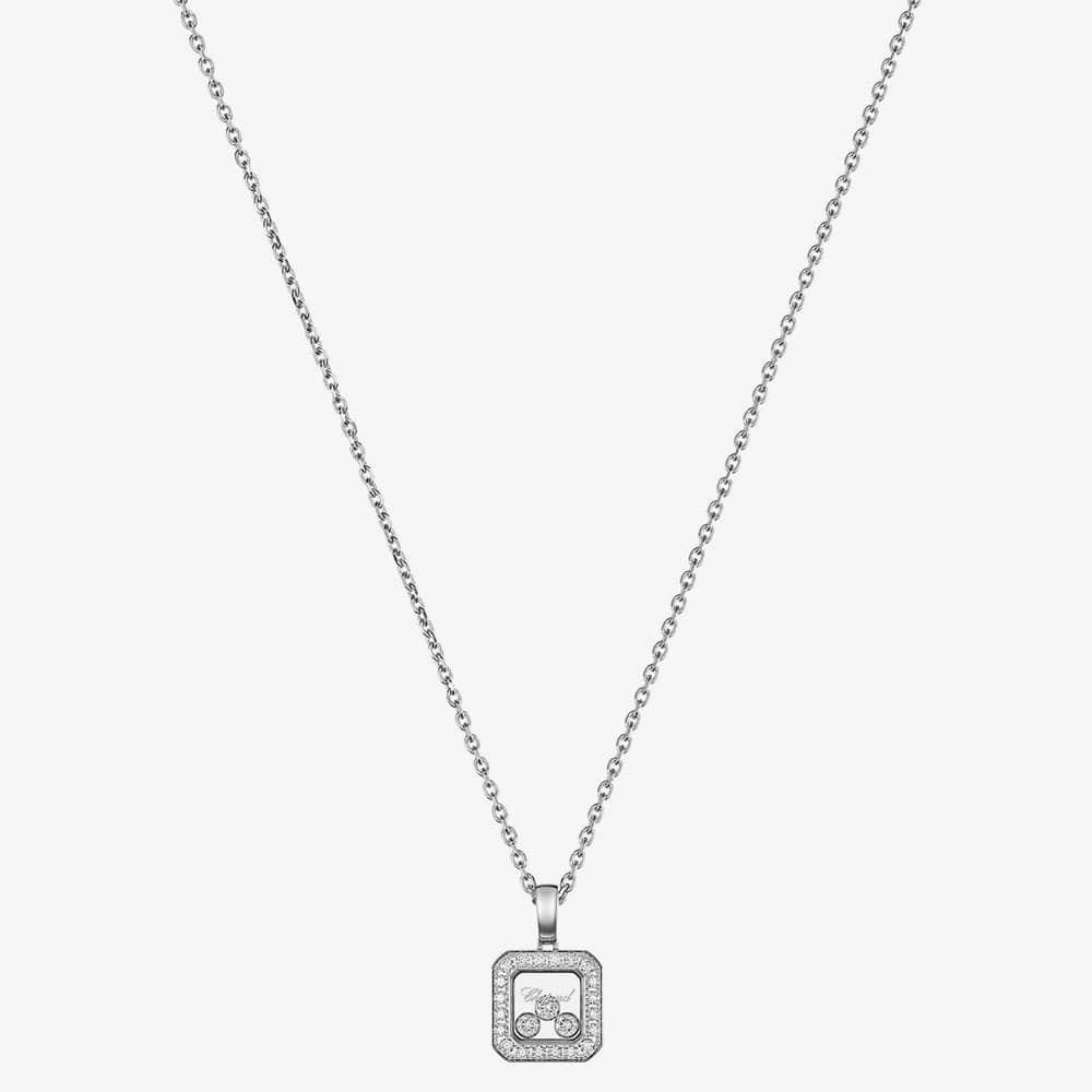 Chopard’s Happy Diamonds jewellery is a spirited and unique masterpiece. The dancing diamonds, set completely free between two square sapphire crystals, move without restraint, amplifying their natural sparkle with every shift. The diamonds collectively weigh 0.40 carats. Little Diamonds Do Great Things.