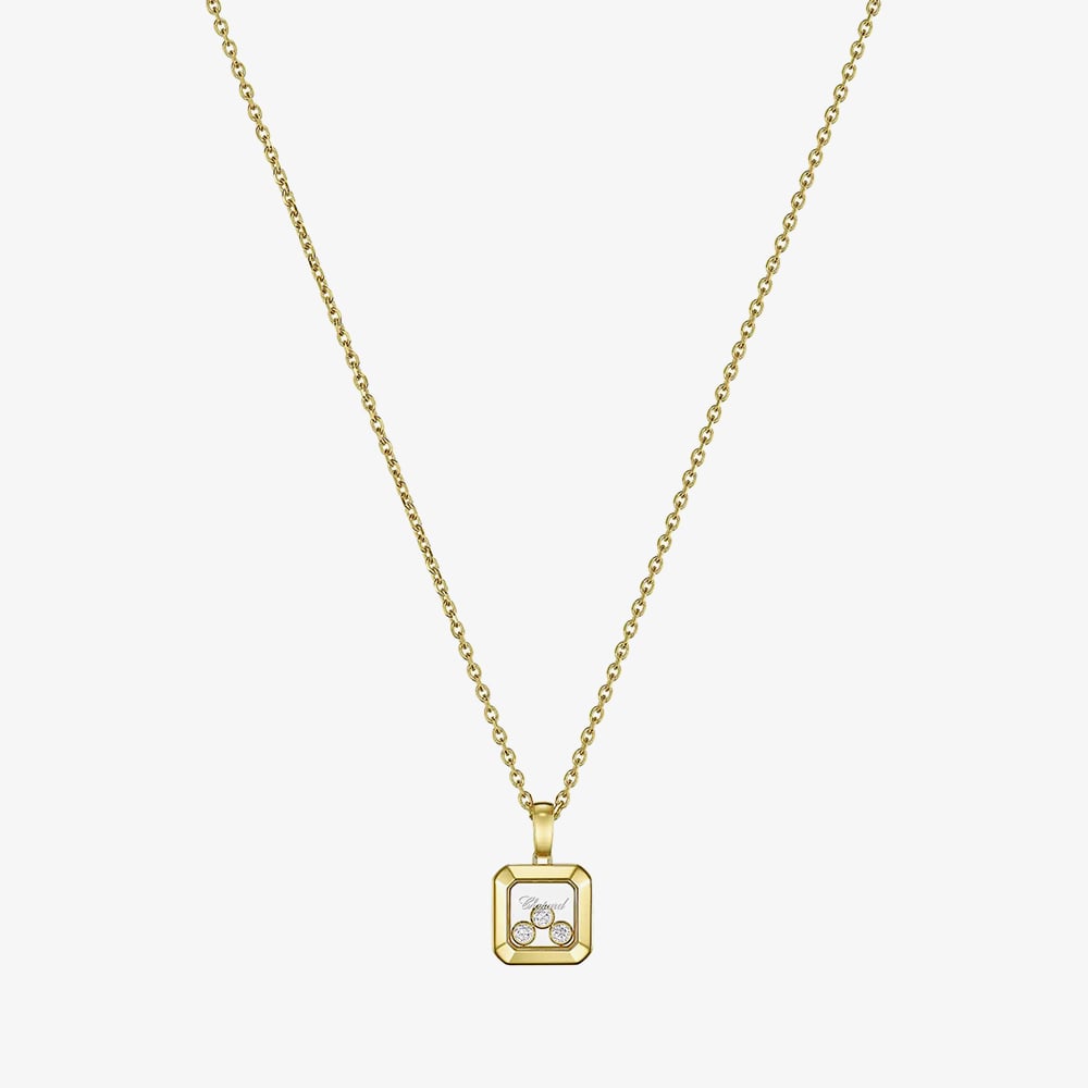 This elegant Hot Diamonds Happy Diamonds Icon Necklace is crafted from luxurious 18ct yellow gold and features a refined square pendant housing three sparkling diamonds with a total weight of 0.15ct. True to the Happy Diamonds spirit, the diamonds are set freely between two sapphire crystals, allowing them to dance with every movement and radiate brilliance from every angle. A playful yet sophisticated piece, it celebrates the joy of motion and the charm of fine craftsmanship — because Little Diamonds Do Great Things.