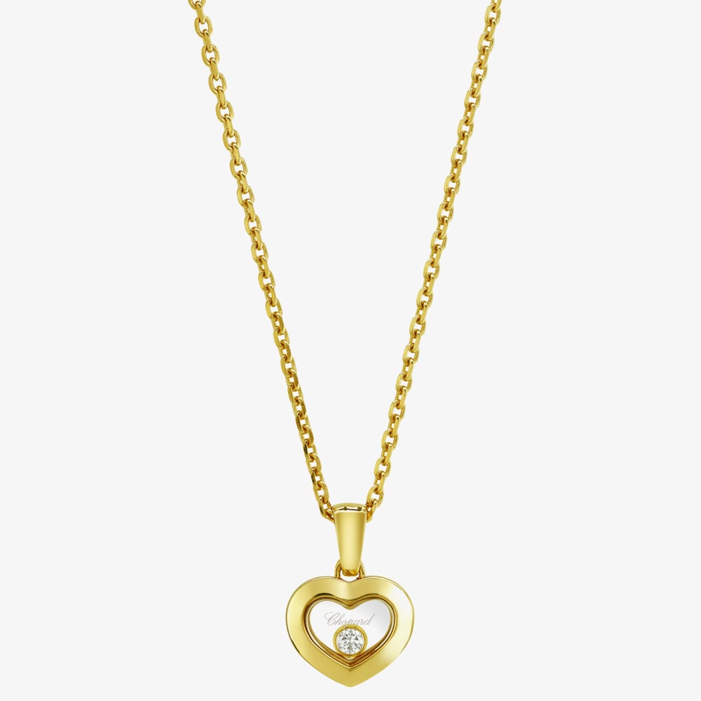 From the Happy Diamonds collection, this stunning Icons necklace crafted in 18ct yellow gold and features a polished heart-shaped pendant while beneath a is a free moving sparkling 0.05ct diamond set inside the crystal glass which is free to move around and dance under light. Beautifully finished with a delicate yellow gold chain which is adjustable to suit comfort & style. Little Diamonds Do Great Things.