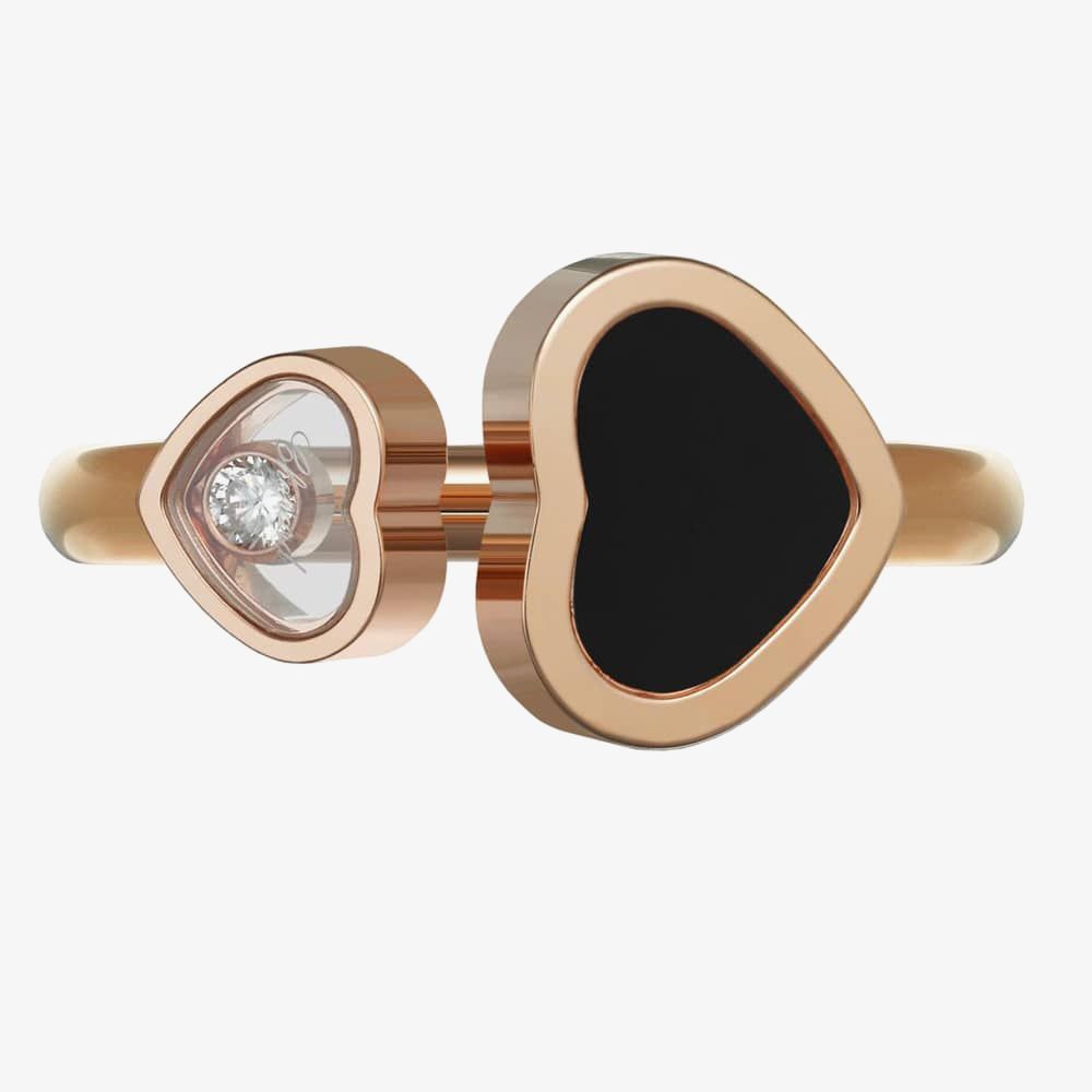 A beautifully crafted ladies ring which forms part of the Chopard happy hearts collection. Crafted from 18ct rose gold which offers the perfect contrast between the deep black onyx setting and free moving 0.04ct diamond.