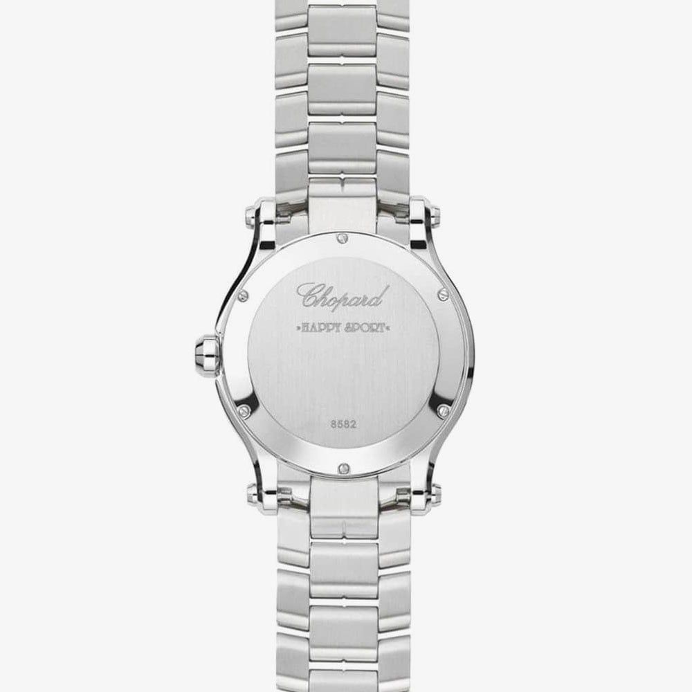 Giving you the best of classic style and subtle opulence in one luxury watch, the Happy Sport Silver Diamond Bracelet Watch offers style and statement for every occasion big or small. Situated on a stainless steel 4-link bracelet with a fold-over clasp, the white dial features a Chopard logo detail, silver three-hand display, date functionality, silver roman numeral indexes, and 5 genuine 0.35ct diamonds set beneath the glass. Encased in a stainless steel 36mm dial case with glareproof scratch-resistant sapphire glass and a blue diamond on the crown of the watch, power is generated by the quartz movement and is water resistant to 30m, making it a must have.