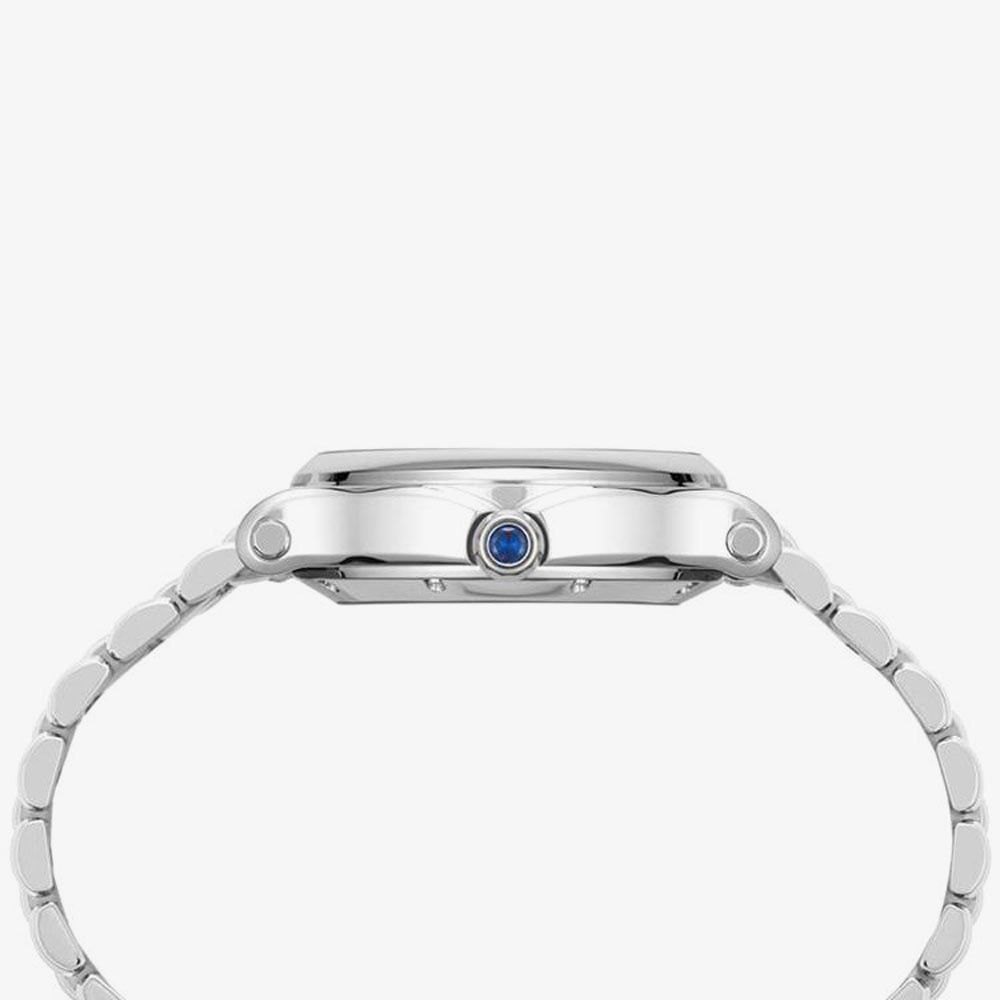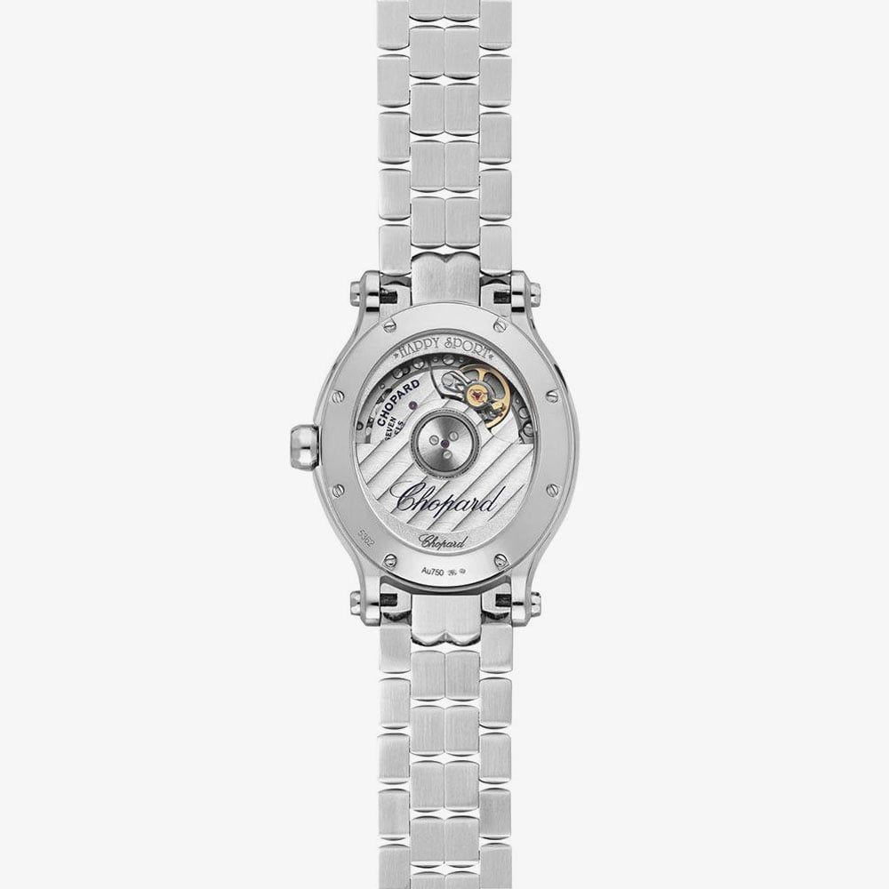 Offering a sophisticated and elegant look, the Happy Sport Silver Oval Diamond Bracelet Watch makes statement for every occasion big or small. Situated on a silver stainless steel 4-link bracelet with a fold-over clasp, the silver oval-shaped dial with a guilloche centre features a Chopard logo detail, silver three-hand display, silver roman numeral and baton indexes, and 7 genuine diamonds set beneath the glass. Encased in a stainless steel 31.3mm by 29mm dial case with glareproof scratch-resistant sapphire glass, the watch also features a blue diamond on the crown of the watch and operates on Swiss-made self-winding movement, water resistant to 30m, making it a must have.