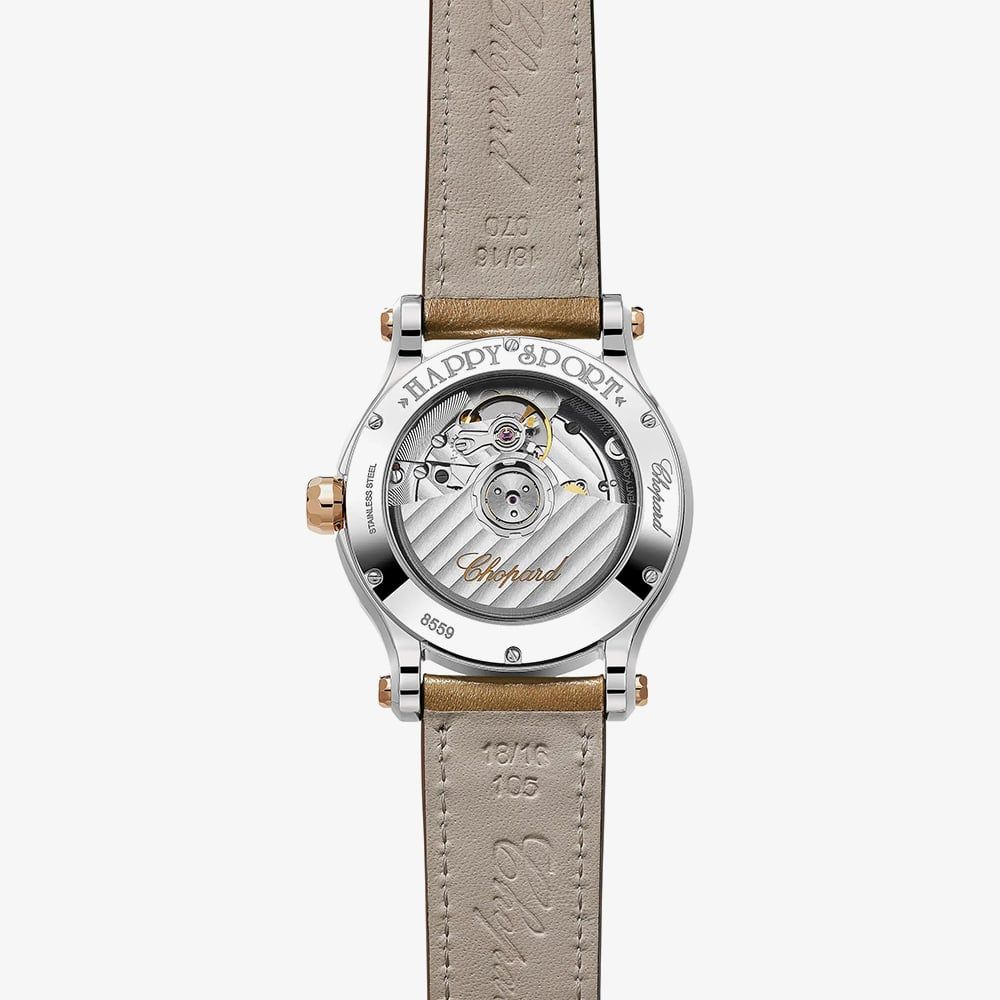 The Happy Sport collection stands as a symbol of Chopard’s bold creativity. Since 1993, its playful, free-spinning diamonds—dancing between two sapphire crystals—have captivated imaginations, marking the moment Chopard became the first Maison to unite steel and diamonds. This iconic timepiece features a silver-toned stainless steel case accented with 18-carat rose gold and a striking green khaki dial. Little Diamonds Do Great Things.