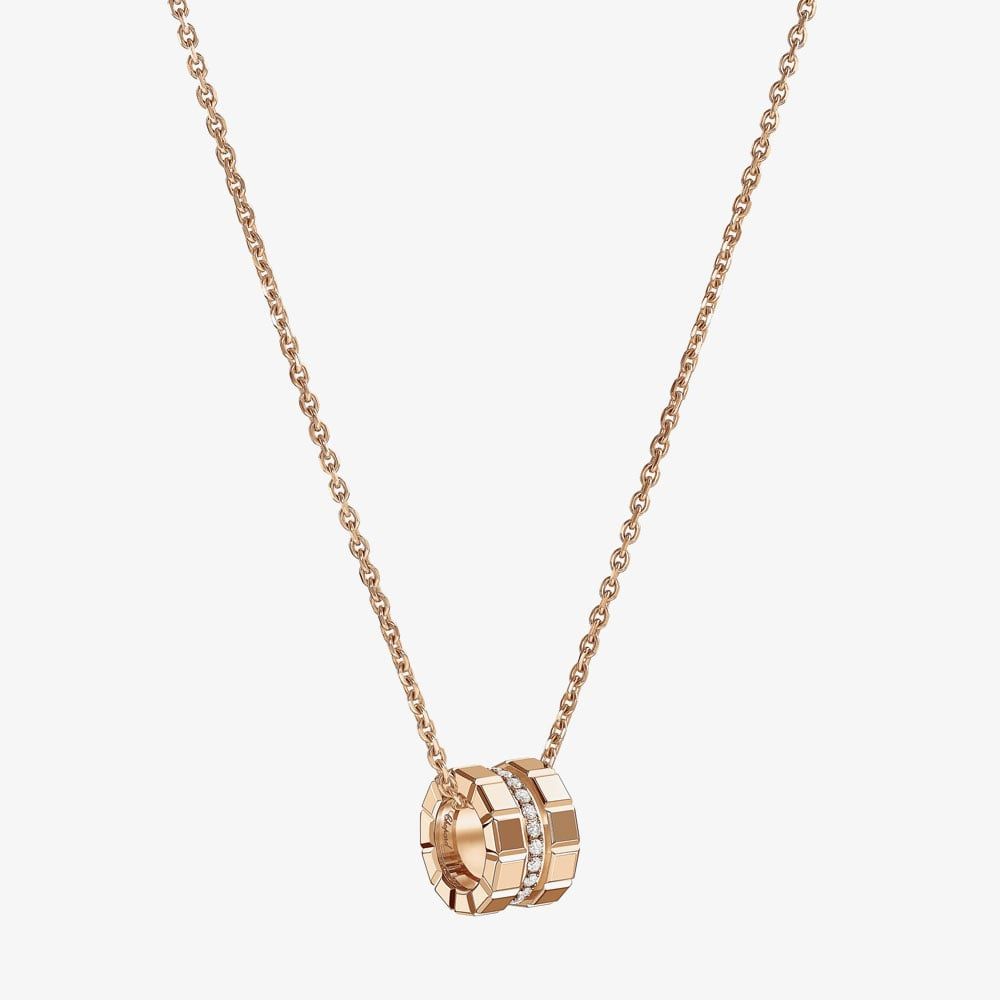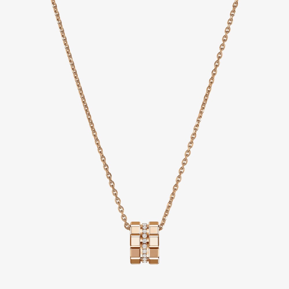 Since its 1999 debut, the Ice Cube collection has continuously reimagined its modern, ice-inspired aesthetic. This collection draws inspiration from the perfect geometry of the cube, symbolizing its rare beauty and captivating facets, as seen in the 18ct Rose Gold Ice Cube diamond pendant with a total of 0.14ct diamond.