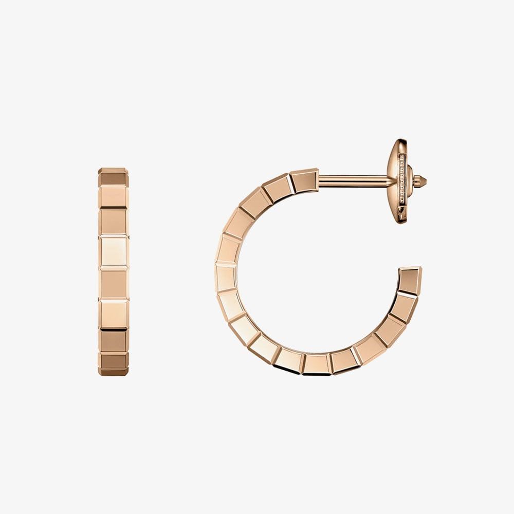The Ice Cube collection draws inspiration from the perfect geometry of the cube, symbolizing its rare beauty and captivating facets as seen in these rose gold mini hoop earrings, perfect for any occasion.