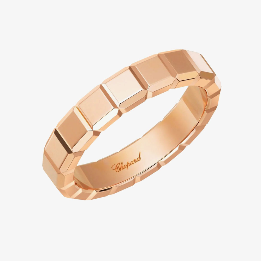 Elevate your style with this exquisite 18ct rose gold Ice Cube Chopard ring, inspired by the elegance of ice blocks. Its block design captures the essence of pure sophistication and modernity. A timeless piece that exudes both luxury and coolness.