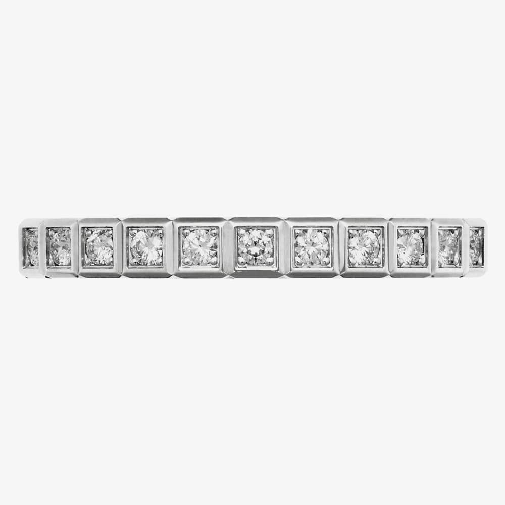 The Chopard Ice Cube Half Eternity Ring is delicately crafted from ethical 18ct white gold and set with 0.11ct brilliant-cut white diamonds. This beautiful ring offers successive interpretations of a modern aesthetic inspired by tiny blocks of ice. The cube is a source of inspiration in all creative fields, featuring perfectly shaped cubes with half of the ring adorned with diamond-set cubes.