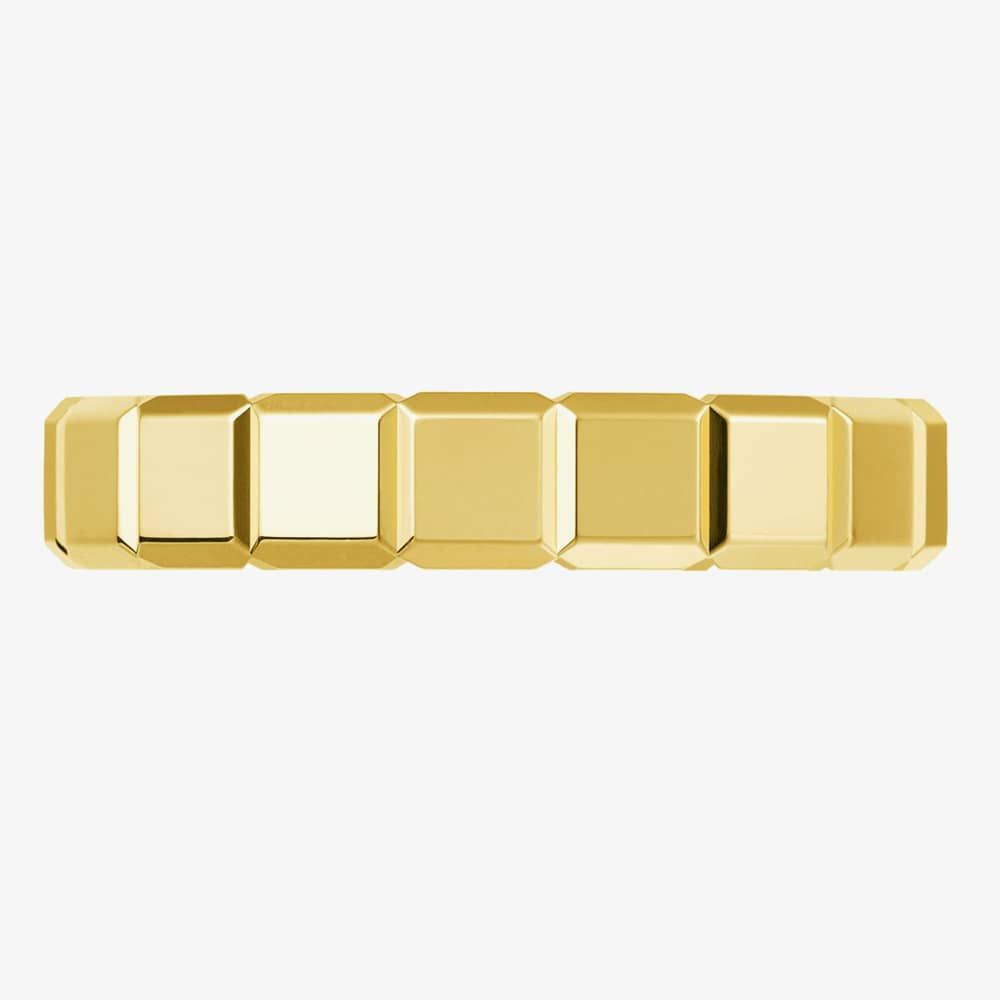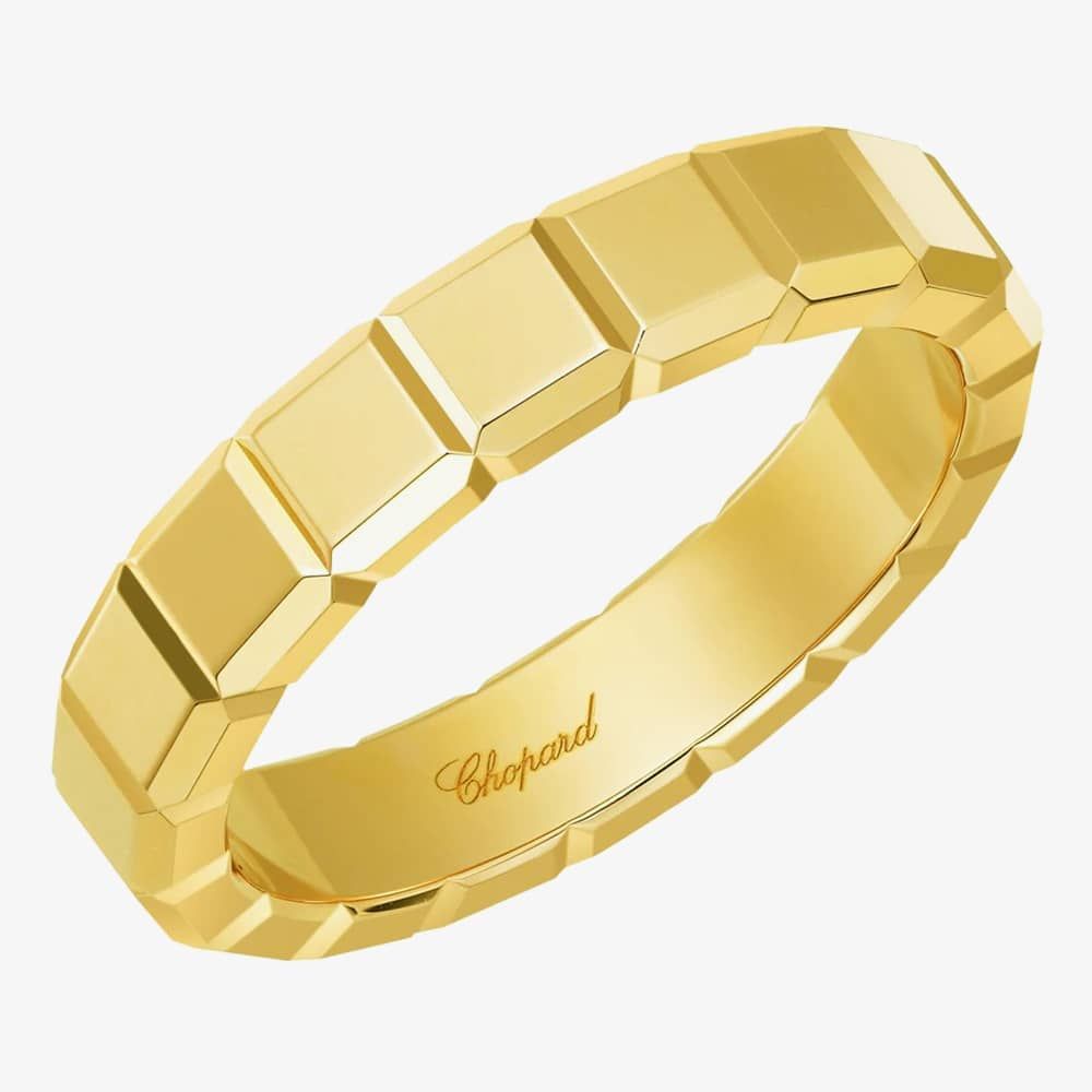 The Chopard Ice Cube Wide Ring is delicately crafted from ethical 18ct yellow gold. This beautiful ring offers successive interpretations of a modern aesthetic inspired by tiny blocks of ice. The cube is a source of inspiration in all creative fields, featuring perfectly shaped cubes to create this simple yet stylish ring.