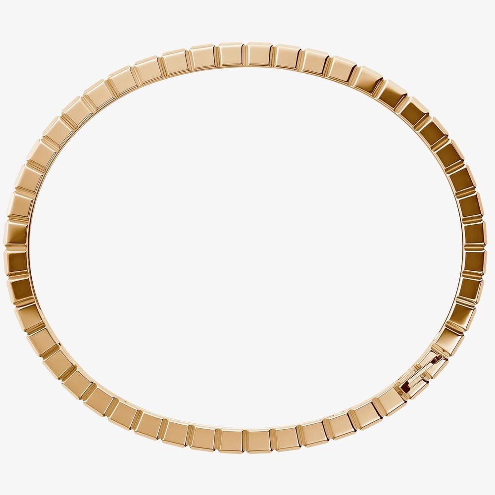 Chopard Ice Cube Pure 18ct Rose Gold Cube Bangle 858350-5002 (M) is delicately crafted from 18-carat rose gold. This beautiful bangle offers successive interpretations of a modern aesthetic inspired by tiny blocks of ice. The cube is a source of inspiration in all creative fields & features a hinged mechanism for a secure fastening. Bangle size: Medium.