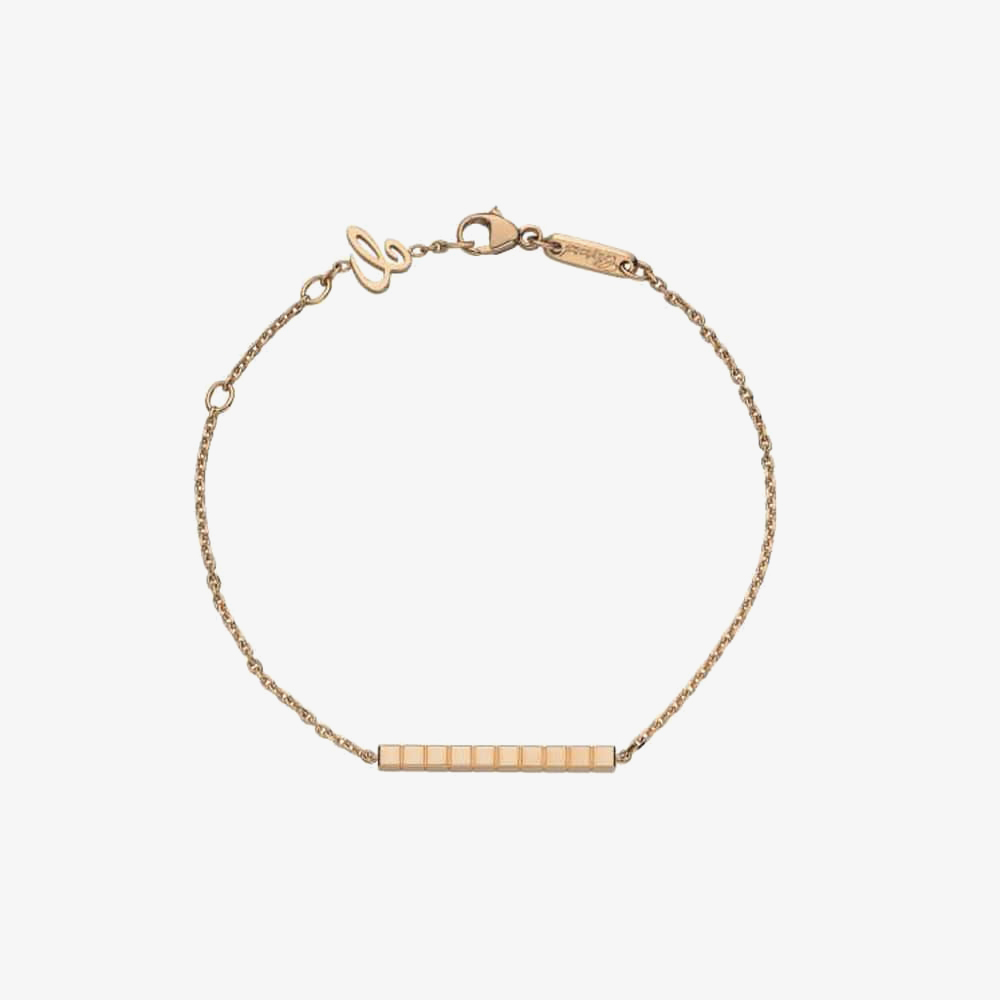 Inspired by the beauty of ice cubes radiating incomparable formal perfection, this stunning bracelet features polished and sparkling cubes closely aligned. The urban and graphic design draws pure lines playing with each ray of light.