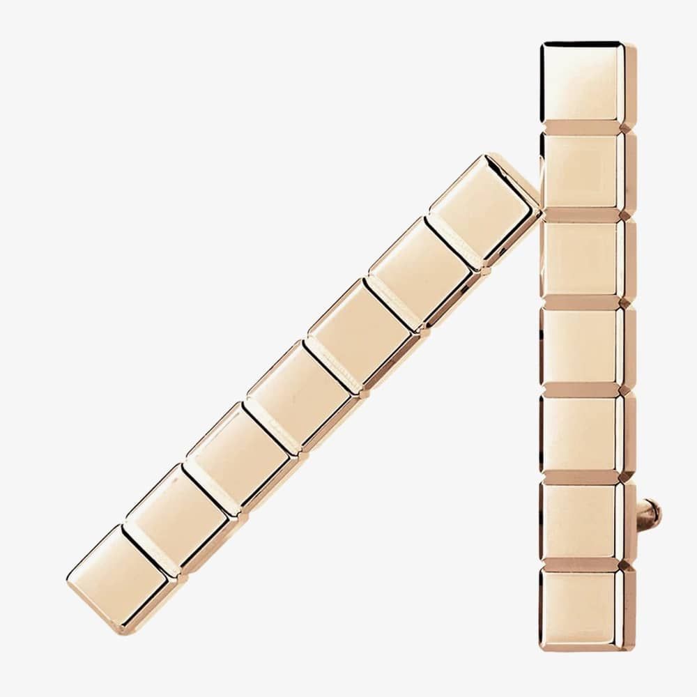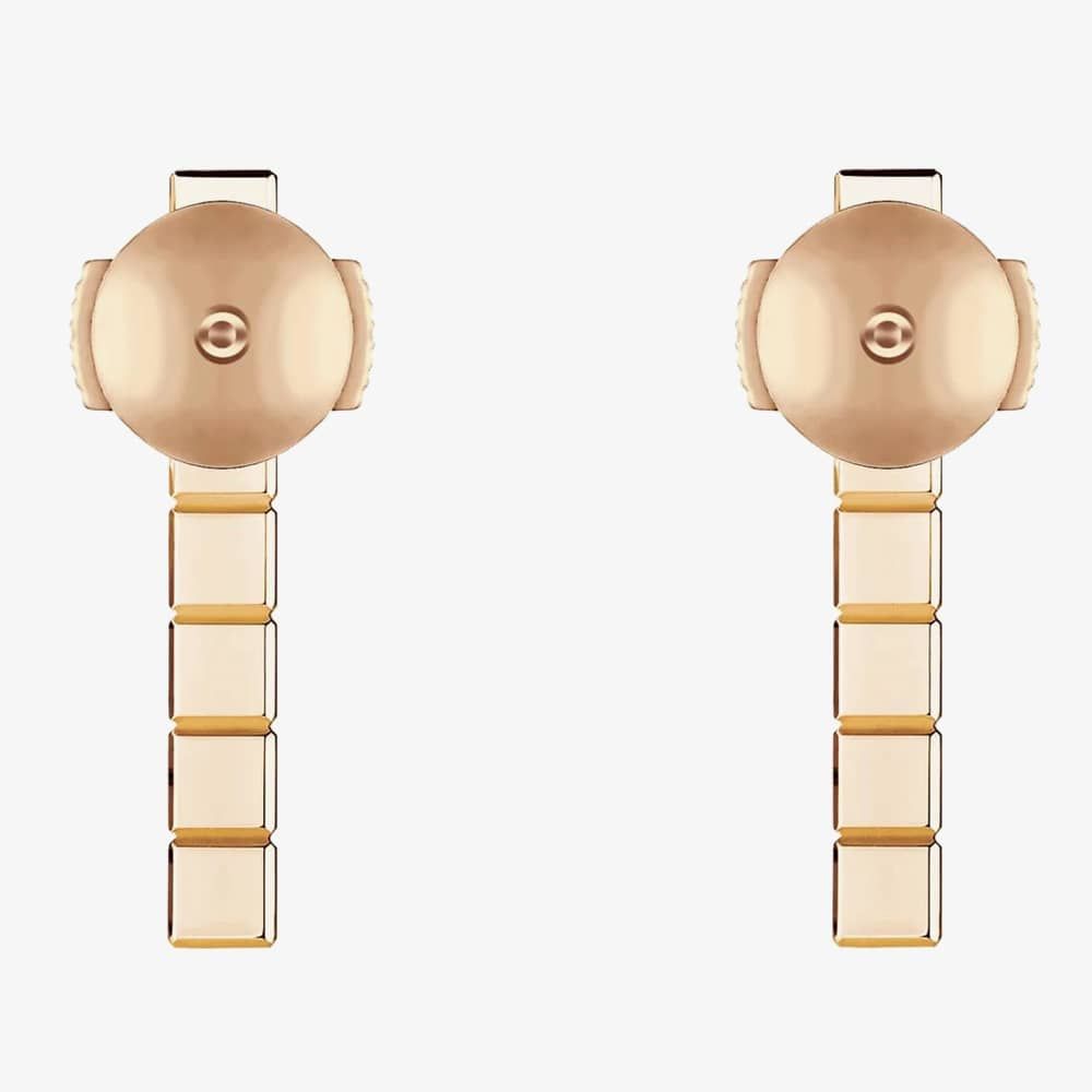 Chopard Ice Cube 18ct Rose Gold Cube Bar Dropper Earrings 837702-5001 are delicately crafted from 18-carat rose gold. These beautiful earrings offer successive interpretations of a modern aesthetic inspired by tiny blocks of ice. The cube is a source of inspiration in all creative fields, featuring seven perfectly shaped cubes per earring attached to a single 18-carat rose gold stud, with a butterfly backing for a secure fastening.