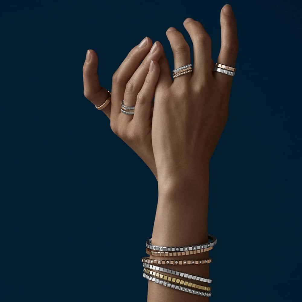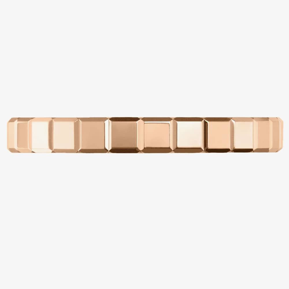 Chopard Ice Cube 18ct Rose Gold Plain Cube Ring 827702-5199 is delicately crafted from 18-carat rose gold. This beautiful ring offers successive interpretations of a modern aesthetic inspired by tiny blocks of ice. The cube is a source of inspiration in all creative fields, featuring perfectly shaped cubes to create this simple yet stylish ring.