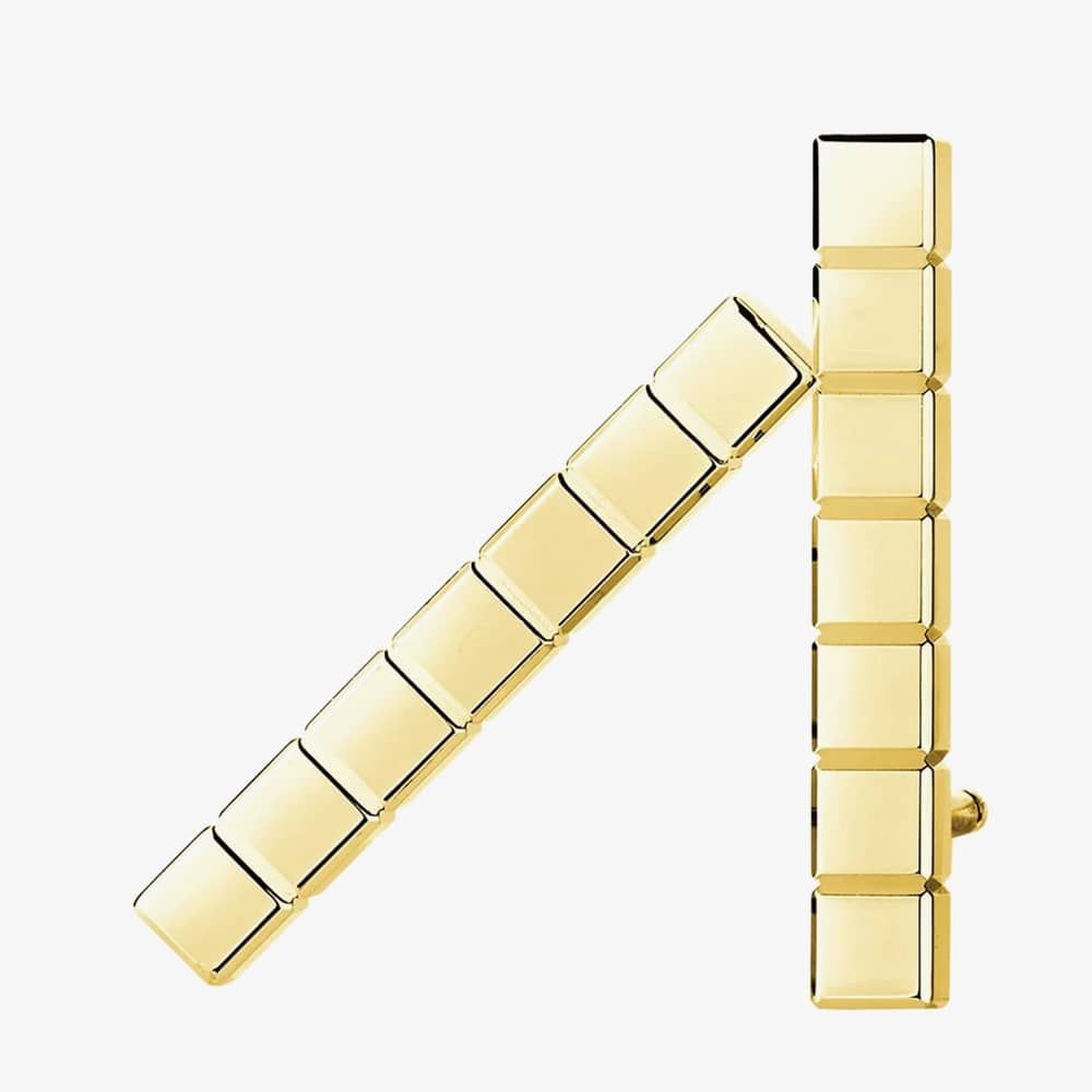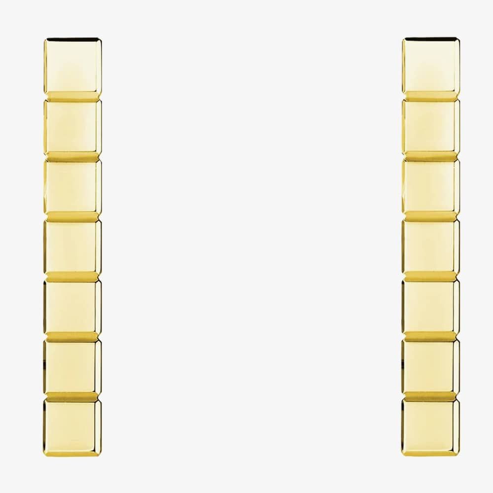 Chopard Ice Cube 18ct Yellow Gold Cube Bar Dropper Earrings 837702-0001 are delicately crafted from 18-carat yellow gold. These beautiful earrings offer successive interpretations of a modern aesthetic inspired by tiny blocks of ice. The cube is a source of inspiration in all creative fields, featuring seven perfectly shaped cubes per earring attached to a single 18-carat yellow gold stud, with a butterfly backing for a secure fastening.