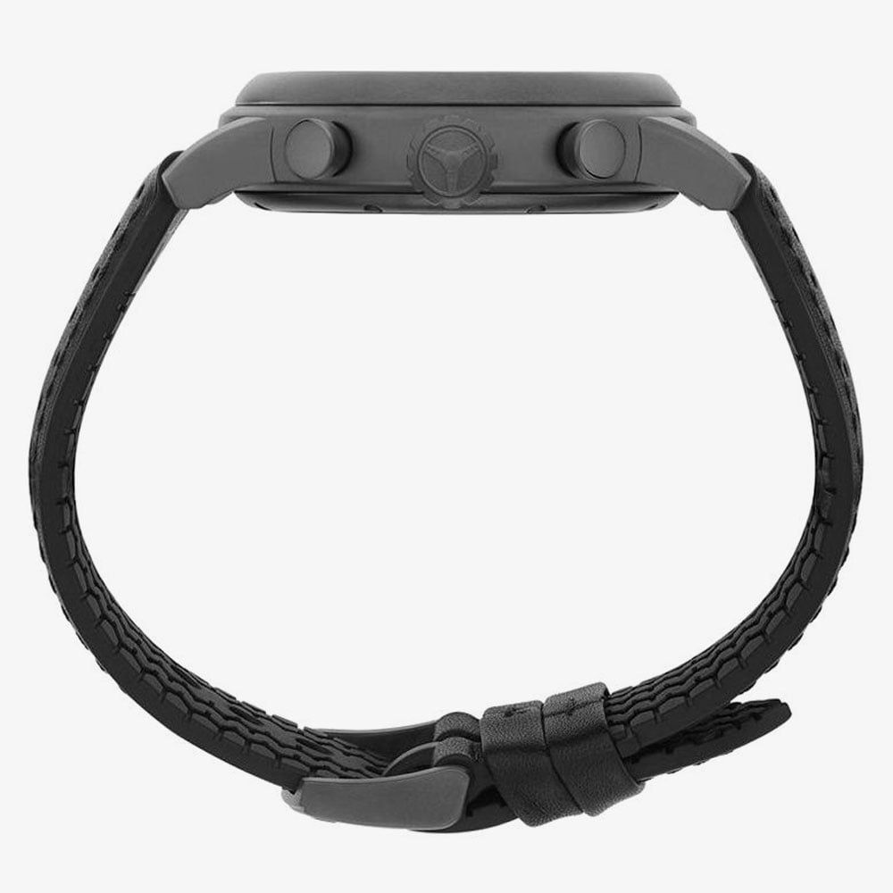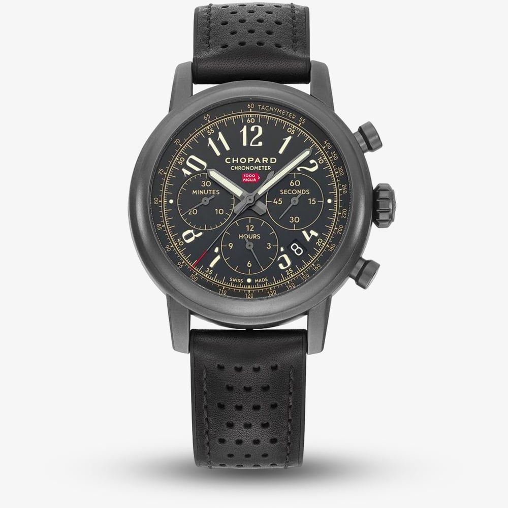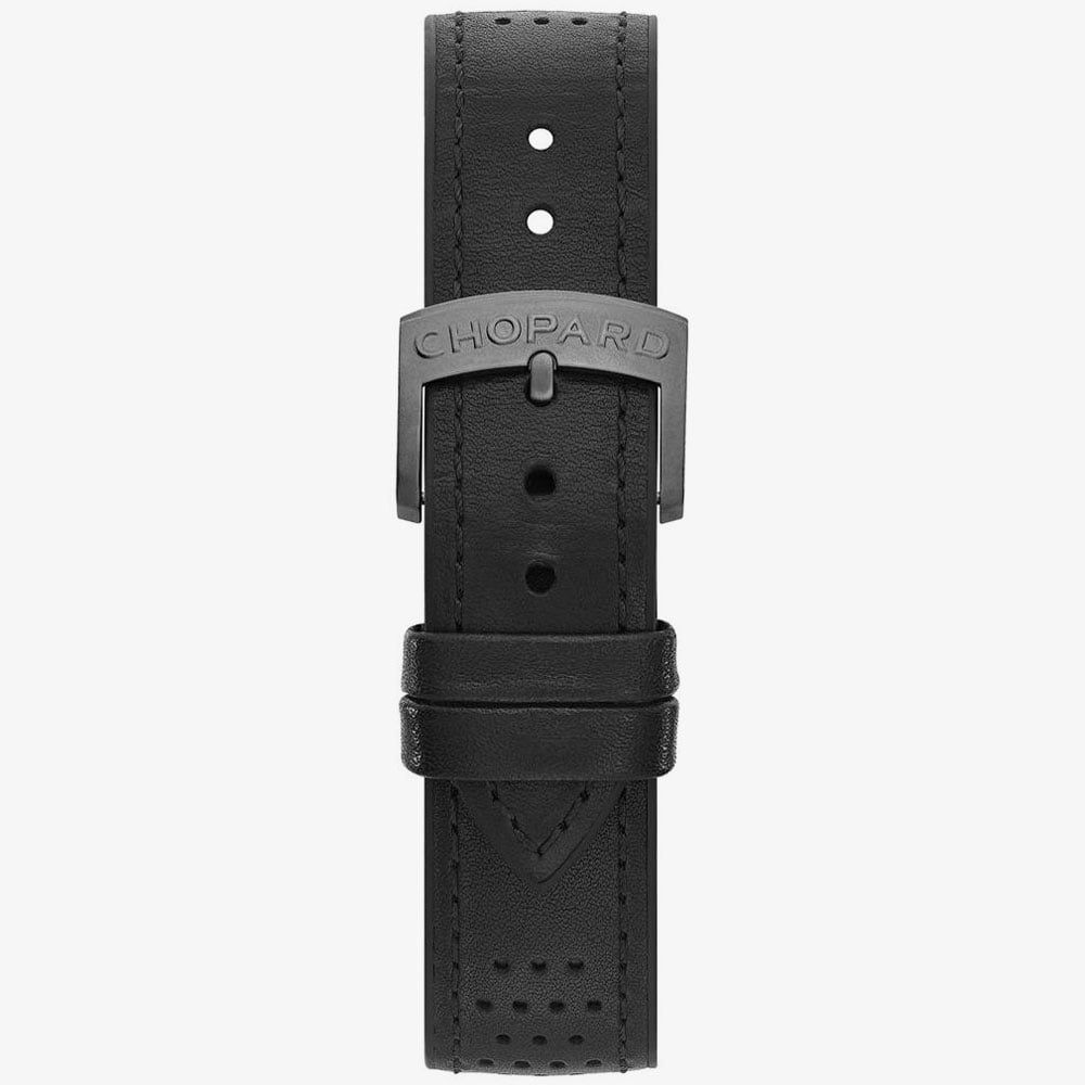 Giving you the best of classic style, practicality and bold design in one luxury watch, the Mille Miglia 2020 Race Edition Chronograph Watch offers style and statement for every occasion big or small. Situated on a perforated black calfskin leather strap based on black rubber with a traditional buckle fastening, the galvanic satin-brushed black dial features a red '1000 Miglia' logo, Chopard Chronometer logo detail, luminescent grey and red three-hand display, date functionality, luminescent number indexes, stop watch functionality, tachymetre and three chronograph dials for second, minute and hour time-telling in cream writing. Encased in a black stainless steel 42mm dial case with glareproof scratch-resistant sapphire glass and featuring a steering wheel motif on the crown of the watch, the watch operates on Swiss-made self-winding movement and is a COSC-certified chronometer watch with 28,800 vibrations per hour. Part of the '1000 Miglia' Classic Racing Limited Edition collection, the watch is also water resistant to 50m, making it a must have.