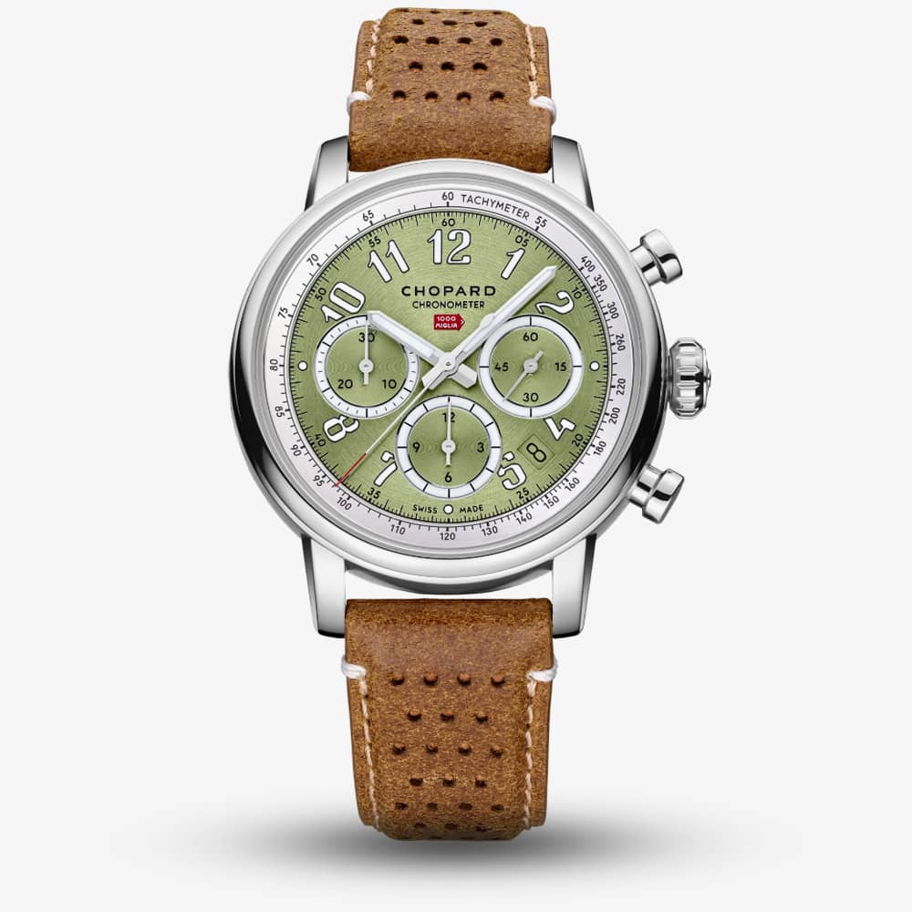 The Chopard Mille Miglia is a stunning and stand out timepiece that looks race ready. This watch features a chronometer certified movement for guaranteed time keeping accuracy, a tachymeter timing scale bezel and three chronograph sub dials. The watch also features a date display