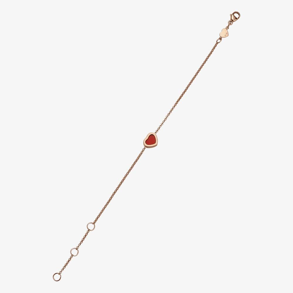 This elegant 18ct rose gold bracelet features a captivating red carnelian heart. Crafted with exquisite attention to detail, this bracelet combines the warm tones of rose gold with the bold beauty of carnelian, adding a touch of romance and sophistication to any look.
