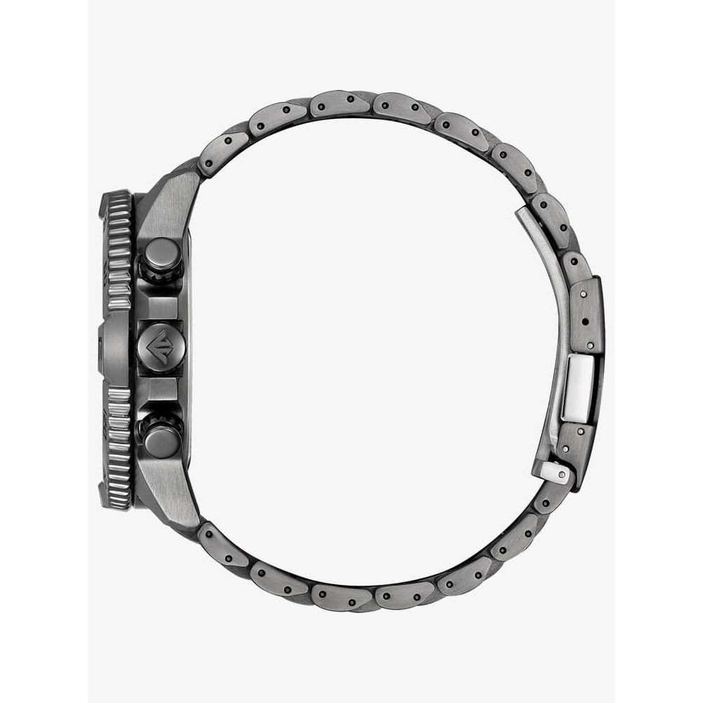 The Citizen AT8227-56X Promaster Navihawk A-T watch combines a 48mm round shaped grey ion-plated stainless steel case and grey bracelet with a push button clasp. It has a green analogue dial with a date display, luminescent hands and indices, chronograph function, 12/24 hour time, world time in 26 cities, and power reserve indicator, all of which is protected beneath anti-reflective scratch resistant sapphire crystal glass. Power is generated by the eco-drive movement which harnesses light from any source. This model is also radio controlled ensuring the highest level of accuracy and has a water resistance of up to 200 metres.