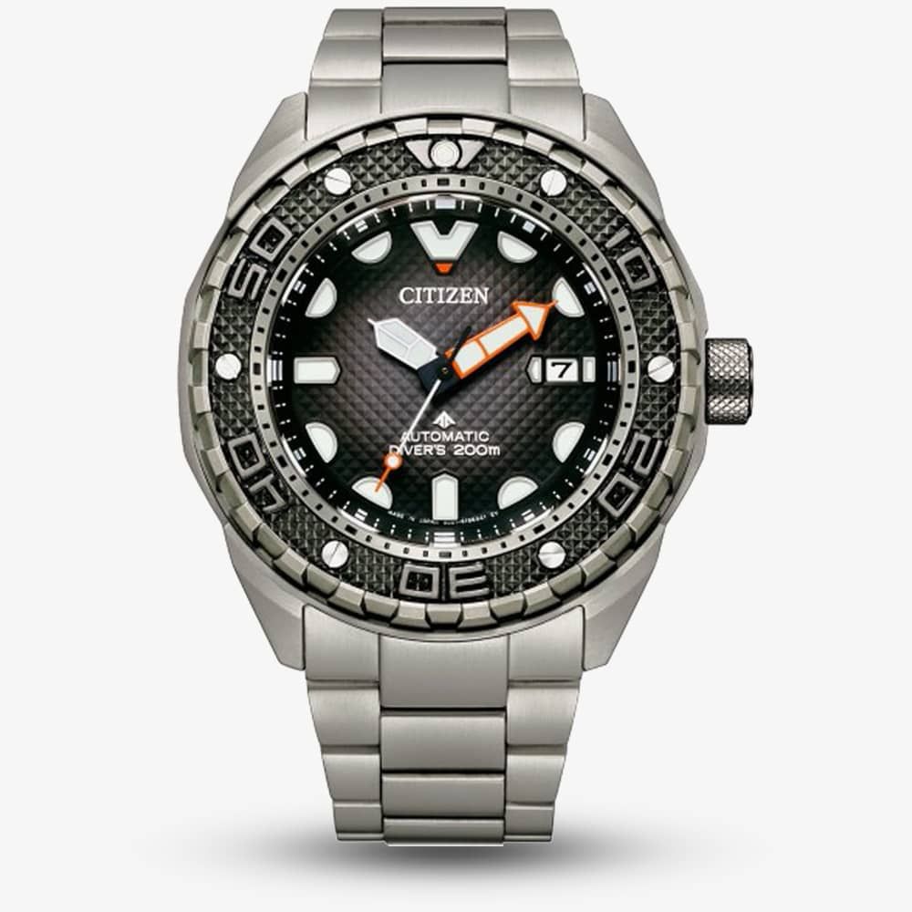 The Citizen Promaster Automatic Super Titanium Bracelet NB6004-83E watch combines a 46mm round shaped super titanium case and super titanium bracelet with a double push button deployment clasp. It has a black patterned analogue dial with luminescent hands, hour markers & date display which are protected beneath a scratch resistant sapphire crystal glass. Power is generated by the automatic movement with a power reserve of up to 42 hours. This model also has a water resistance of up to 200 metres. Weighs approximately 147 grams & is Antimagnetic.