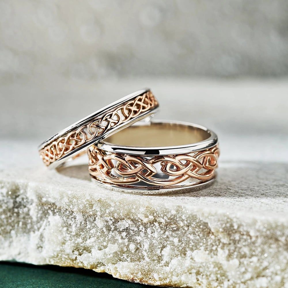 The Welsh word “annwyl” (meaning dear) is deeply rooted in the nation’s rich cultural heritage. Inspired by the Celts’ fondness for intricate, interwoven designs, our Annwyl Silver Channel Ring showcases a graceful sterling silver channel band adorned with a flowing 9ct rose gold pattern.