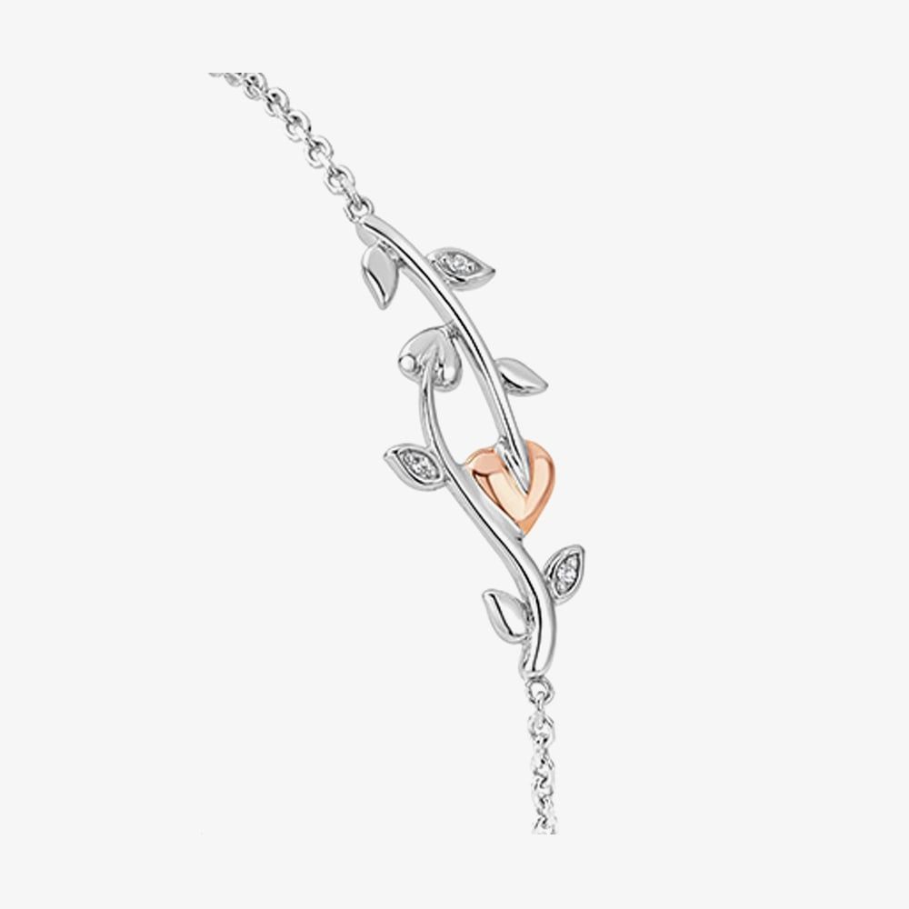 From the Vine of Life collection, this beautiful bracelet has been crafted in sterling silver & rare Welsh 9ct rose gold filagree leaf design & sparkling white topaz stones. This bracelet is ideal as a stand-alone piece or perfect for layering & combining with other Clogau bracelets & bangles to create your own unique look.