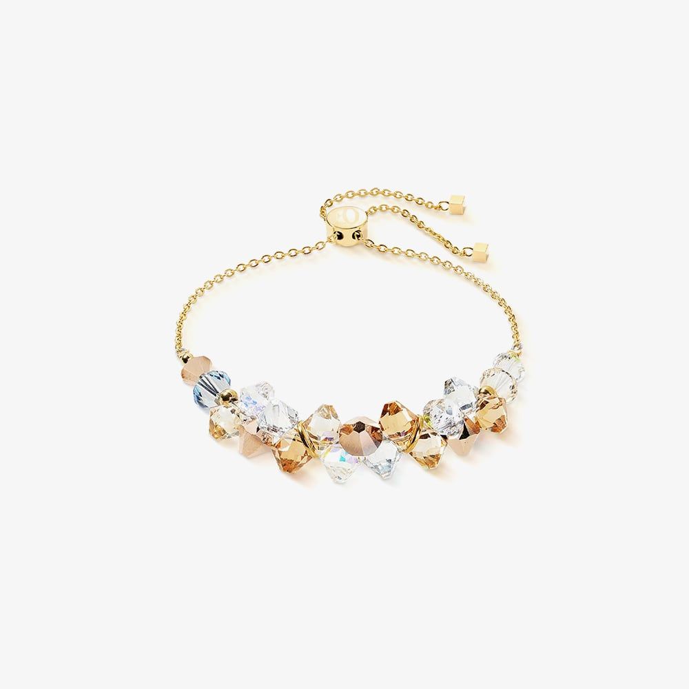 Radiant and refined, this bracelet features clear crystals, gold-tone beads, and stainless steel elements. Handcrafted in Germany, it offers a sparkling touch of elegance that’s perfect for both everyday wear and special occasions.