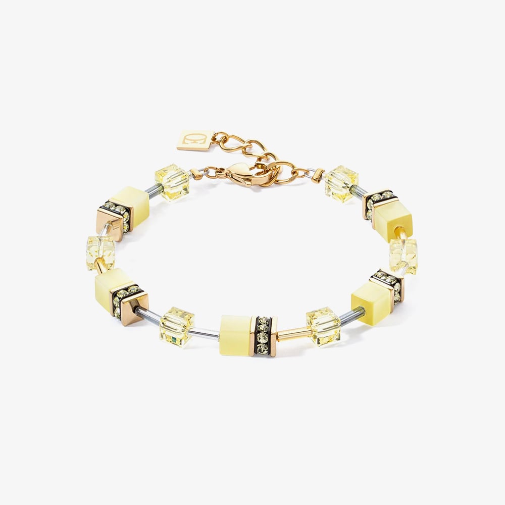 Elevate your style with the timeless elegance of the GeoCUBE Iconic Mono Gold Bracelet by Coeur De Lion. Featuring a radiant combination of Swarovski Crystals, synthetic tiger’s eye, rhinestone rondelles, and gold-toned stainless steel, this bracelet exudes modern sophistication. The sleek, monochromatic gold palette makes it a versatile accessory for both everyday wear and special occasions. Designed with an 18.5 cm length and a 3 cm extension chain for a perfect, adjustable fit.