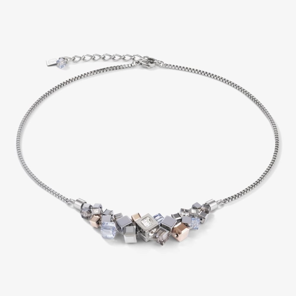Coeur De Lion GeoCUBE Silver Rose Gold Cluster Necklace 5037/10-1723