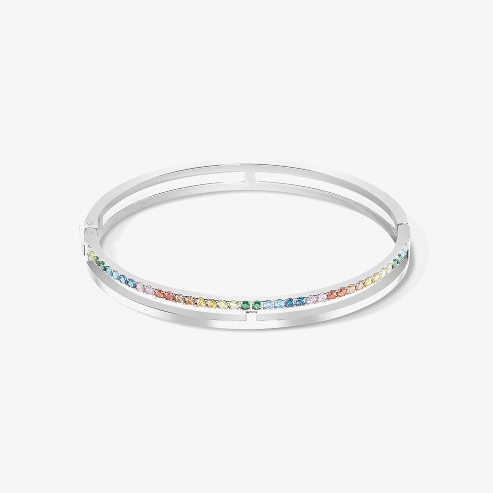 Coeur De Lion Silver Tone Multi Coloured Crystal Bangle 0136/32-1517_19