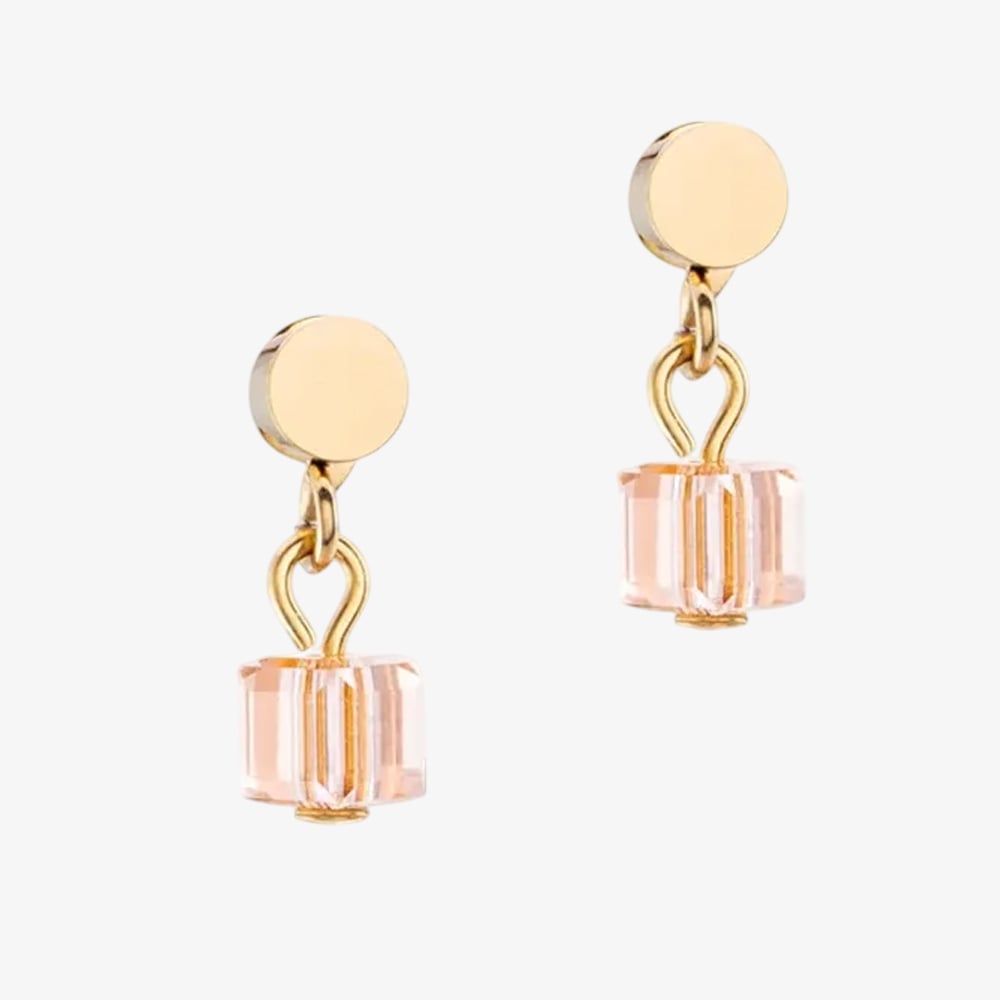 These exquisite earrings feature gold-tone accents paired with radiant apricot-hued square crystals, creating a sophisticated and modern look. Lightweight and beautifully crafted, these earrings make a perfect statement piece on their own or paired with matching accessories. An ideal gift or a luxurious treat for yourself.