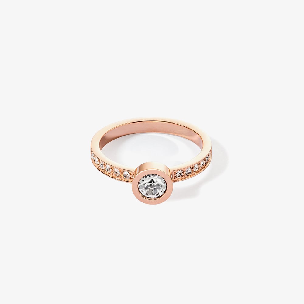 Add a touch of timeless elegance to your jewellery collection with this Rose Gold Tone Shoulder Set Solitaire Ring by Coeur De Lion. Featuring a brilliant white crystal centrepiece accented by sparkling shoulder-set crystals, this refined design offers classic beauty with a modern edge—perfect for any occasion.