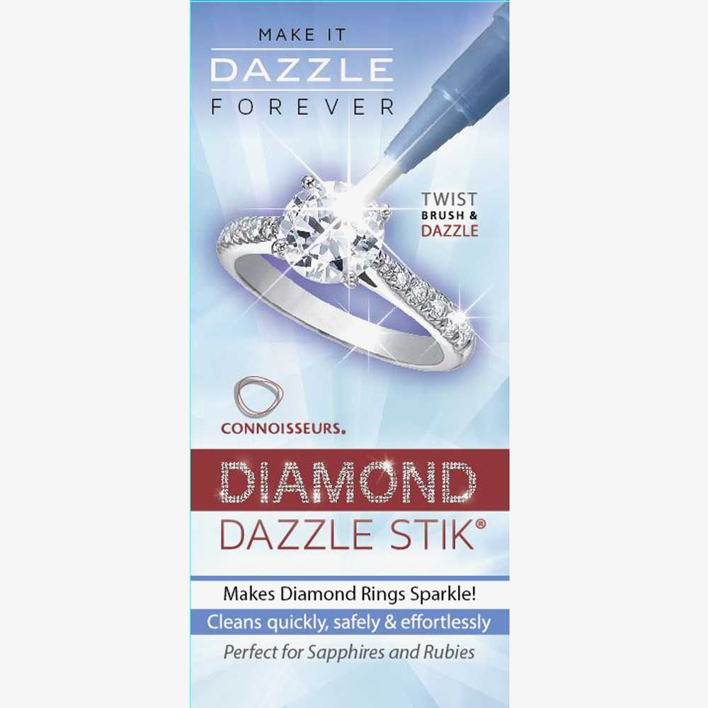 For Diamonds, Precious Stones, Platinum and Gold settings. Connoisseurs Diamond Dazzle Stik makes cleaning diamonds and precious stones a breeze. The jewellery cleaning gel contains micro-fine cleansers and polishing agents that bring radiance and luster to diamonds. Diamond Dazzle Stik formula contains a special polymer that fills tiny scratches in settings. It is formulated to clean diamonds, precious stones, platinum and gold jewellery settings and regular use will improve overall appearance. Twist, Brush, Dazzle. Bring out the bling. Not for use on pearls.