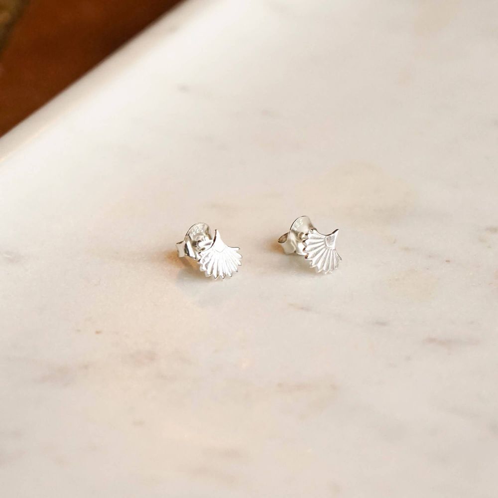The Daisy London Palms recycled sterling silver Palm Fan Stud Earrings WE05_SLV are created in recycled sterling silver and feature a palm fan design. These beautiful studs measure 7.5mm x 7.5mm.