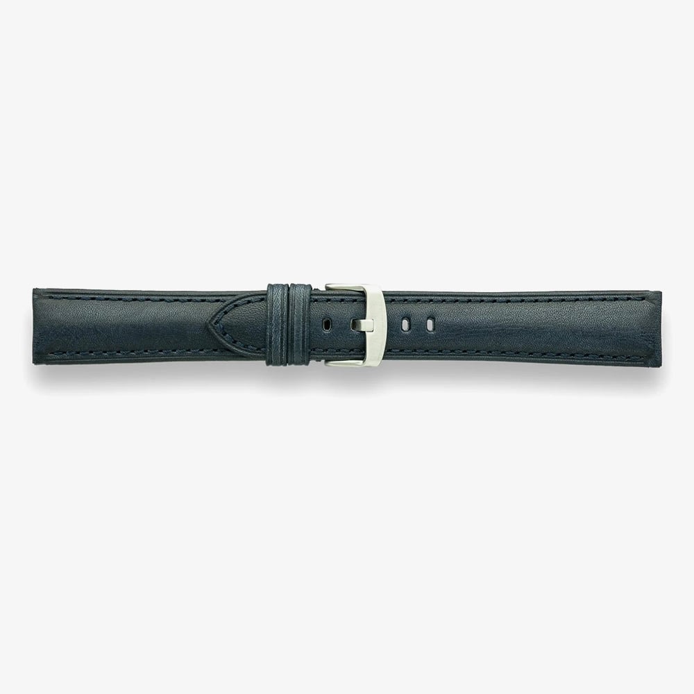 Bring understated sophistication to your watch with the Darlena Ashby Navy Vintage Leather Watch Strap. Crafted from soft, padded calf leather with a subtle vintage finish, this strap features tonal stitching, a clean remborde edge, and a smooth nubuck lining for comfortable wear. Finished with a brushed silver-tone stainless steel buckle, it offers a refined balance of classic style and modern elegance.