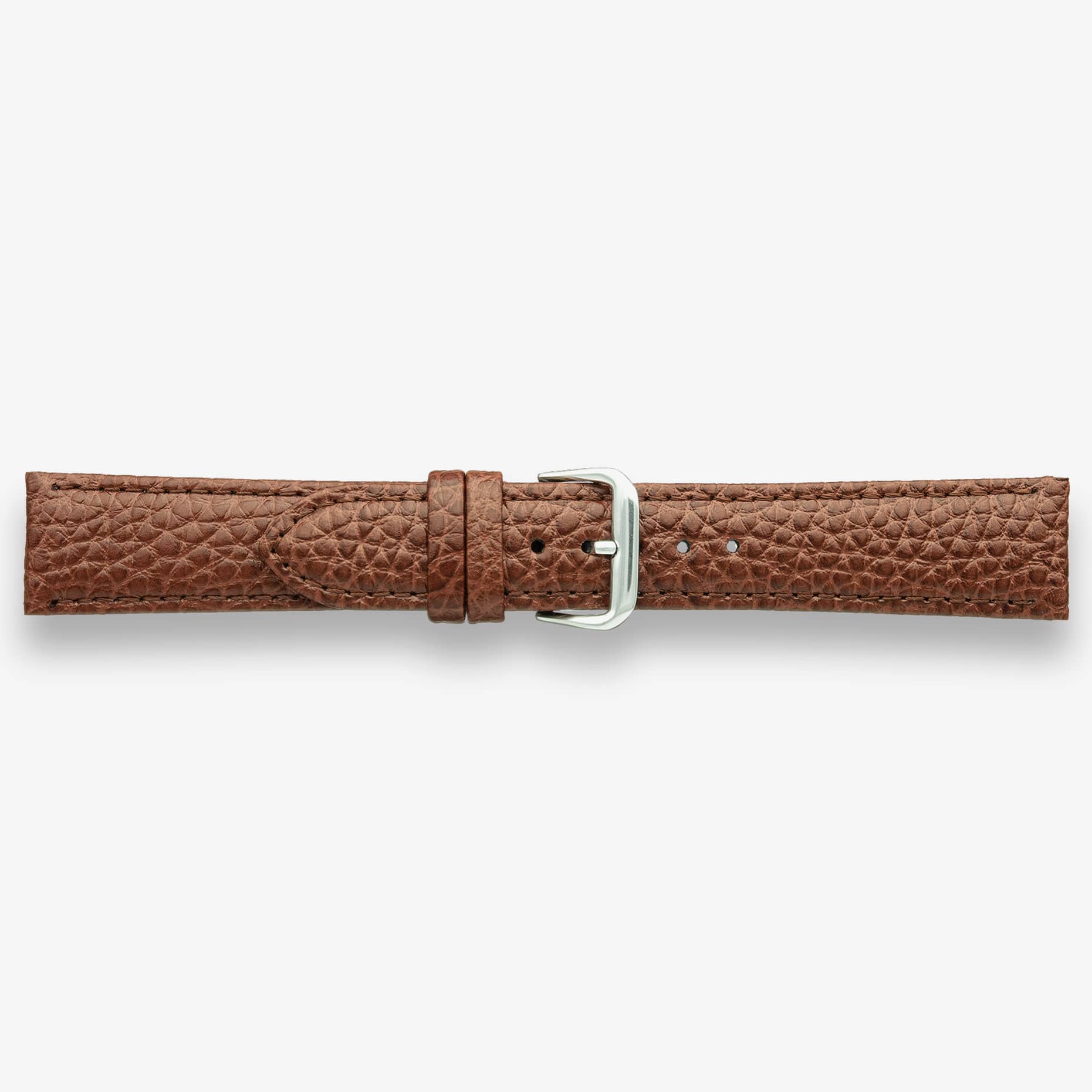 Crafted from padded grained calf, this strap is a timeless classic with a buffalo style embossing and tone on tone stitching. It is generously padded, rugged and durable.