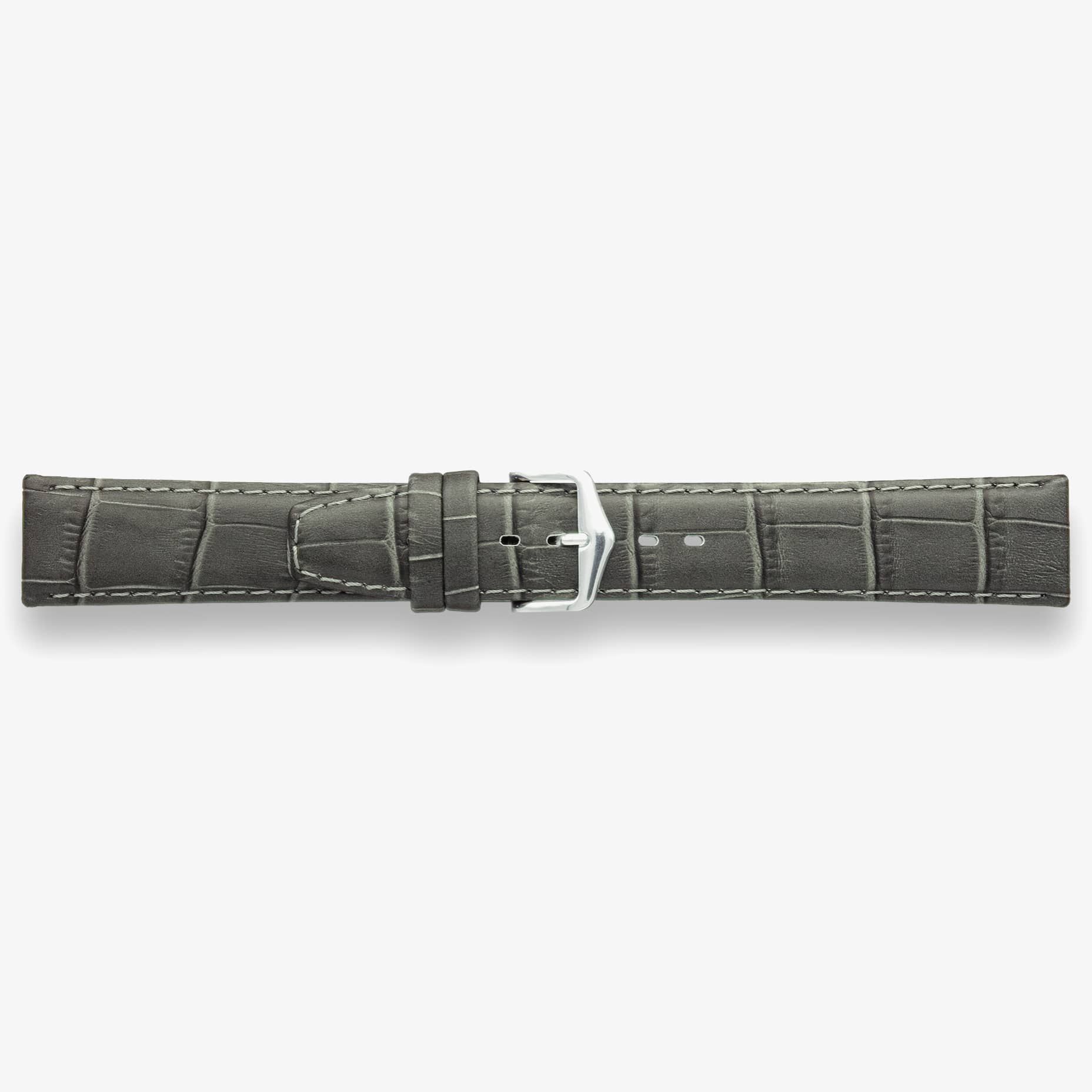 This antique crocodile grain is crafted from calfskin with natural looking croco embossing design in a semi matte finish. This strap has a remborde edge and nubuck lining.