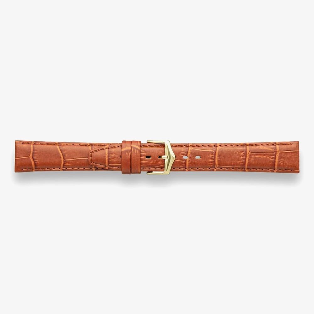 Refresh your watch with the Darlena Lulworth Tan Leather Strap, expertly crafted from fine calfskin with a rich croc-grain embossing and an elegant semi-matt finish. Featuring a refined rembordé edge and a smooth nubuck lining for all-day comfort, this strap is beautifully finished with a gold-plated clasp, adding a touch of luxury and sophistication.