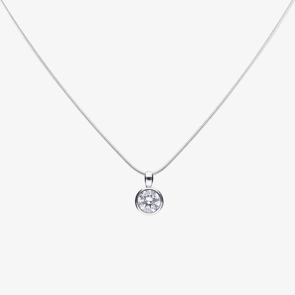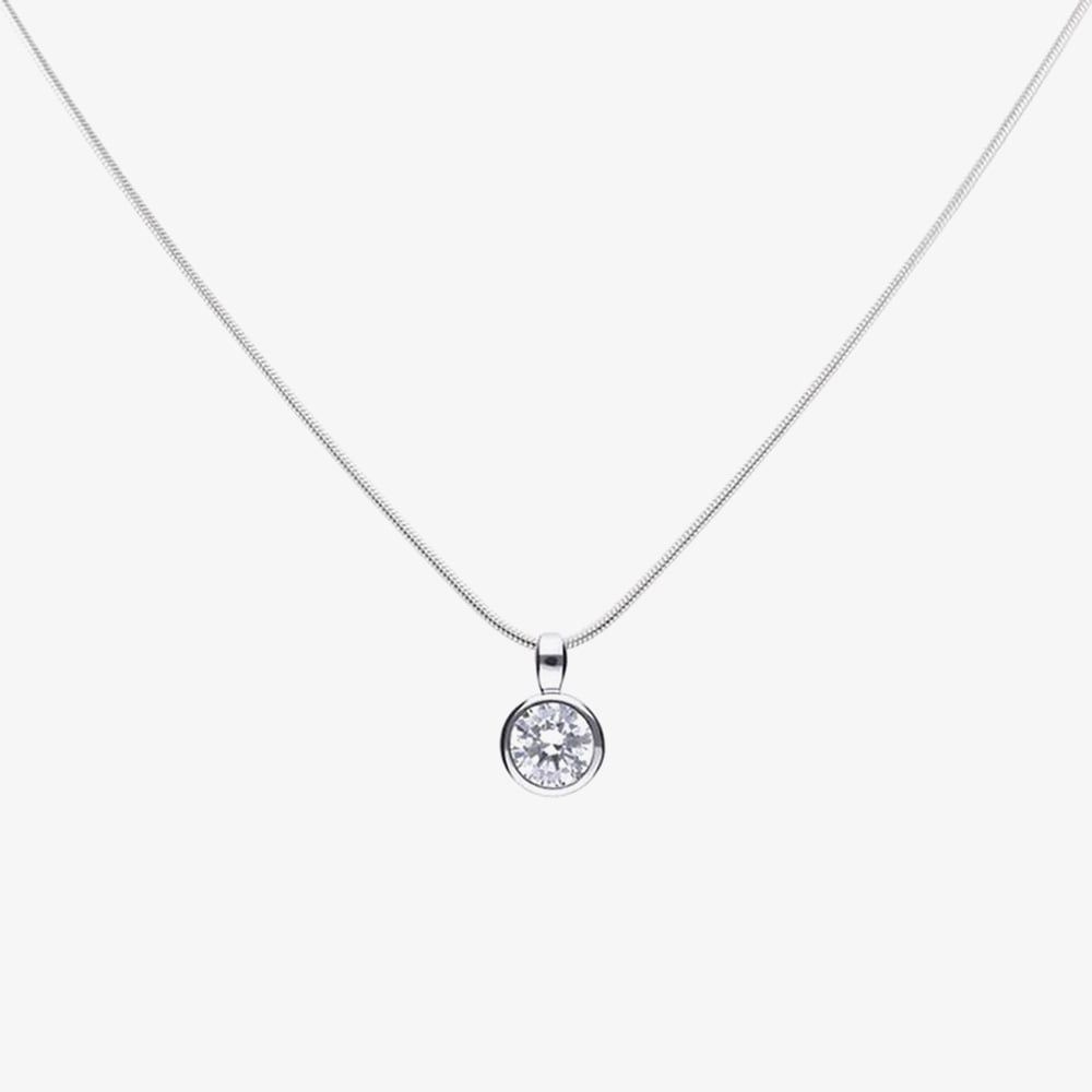 Elevate your style with this Diamonfire necklace, featuring a 0.75ct round cubic zirconia solitaire pendant in a sleek bezel setting that sparkles brilliantly. Crafted in polished sterling silver and finished with a delicate trace chain and secure lobster clasp, its adjustable length allows for versatile wear. A timeless piece, perfect for gifting or adding refined luxury to any ensemble.