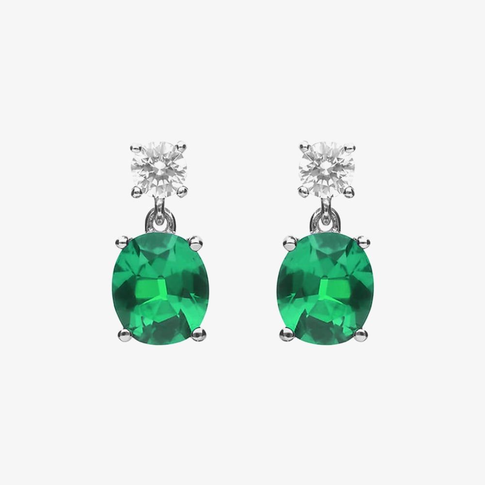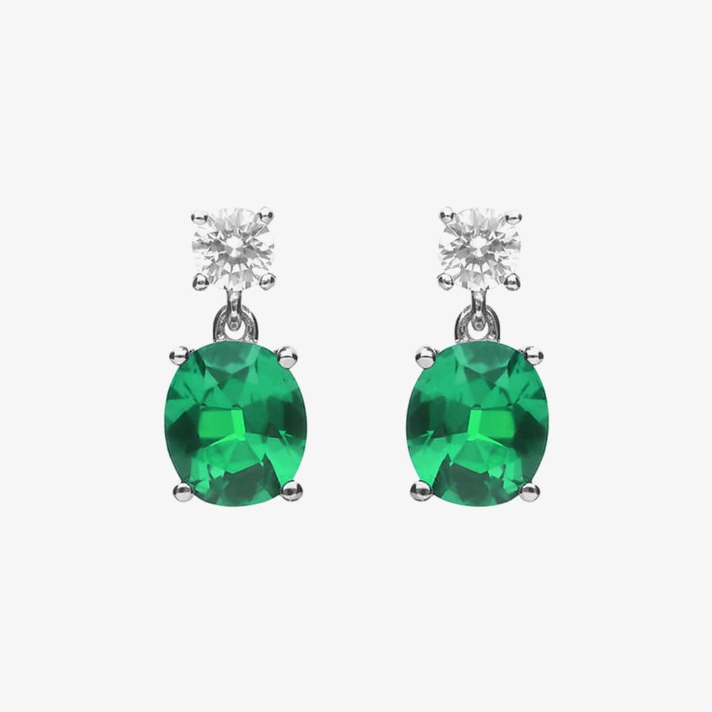 Elevate your style with these Diamonfire stud drop earrings, showcasing a brilliant round white cubic zirconia above a striking oval-cut emerald green cubic zirconia. Set in polished sterling silver with a secure post and butterfly back, they offer a perfect blend of colour and sparkle, making them an elegant choice for gifting or adding a refined touch to any outfit.