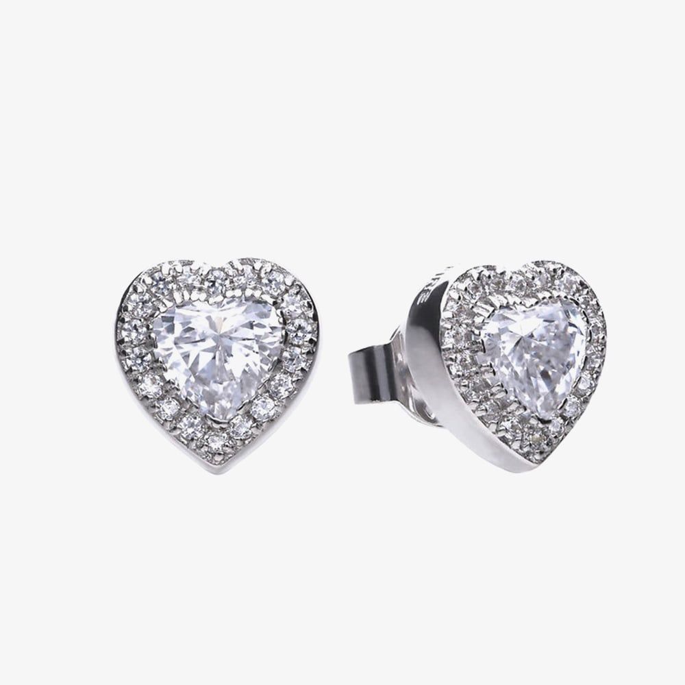 Celebrate romance and sparkle with these Diamonfire heart-shaped stud earrings. Each features a brilliant heart-cut cubic zirconia centre stone surrounded by a halo of smaller stones, all set in polished sterling silver. Perfect for gifting or adding a touch of timeless elegance to any ensemble.