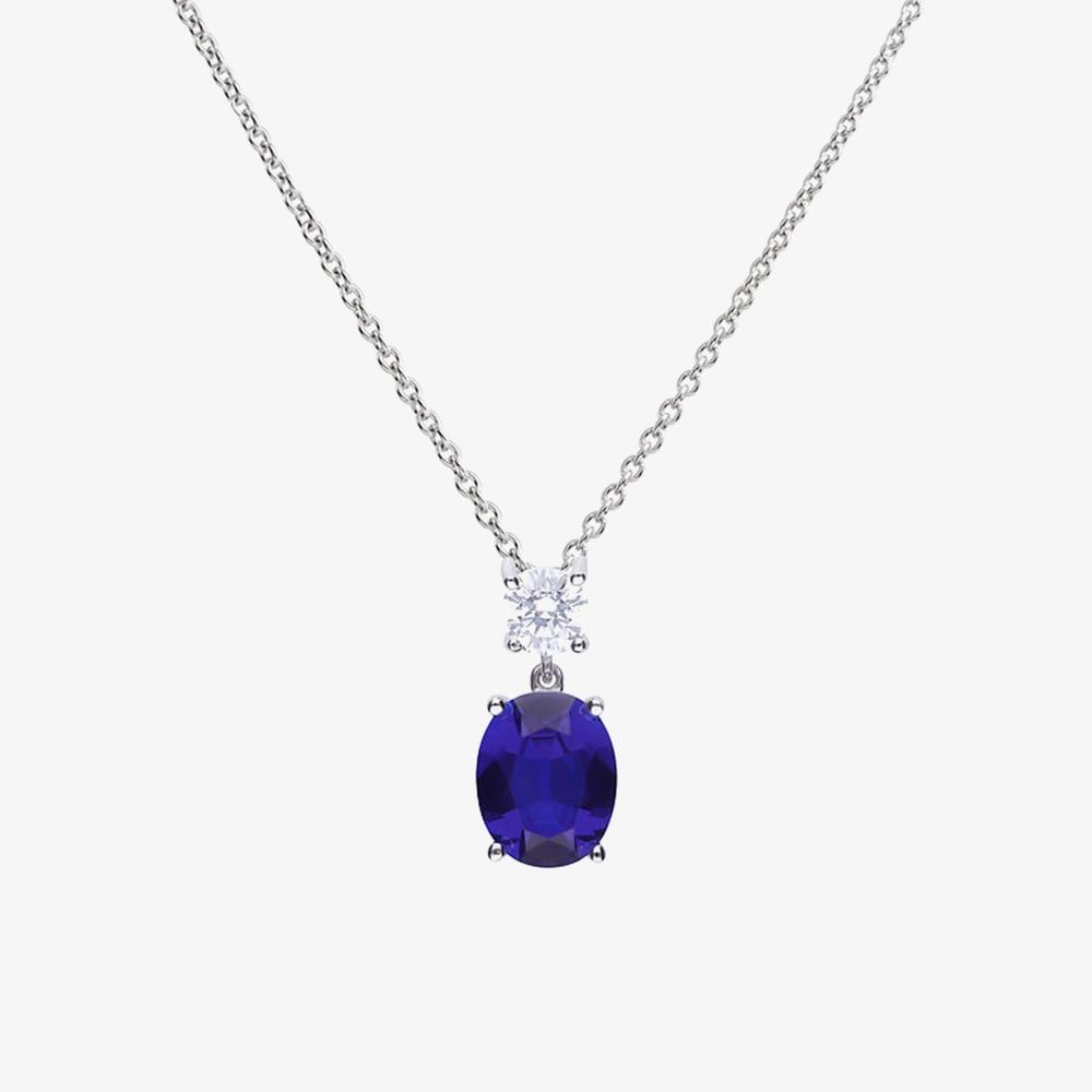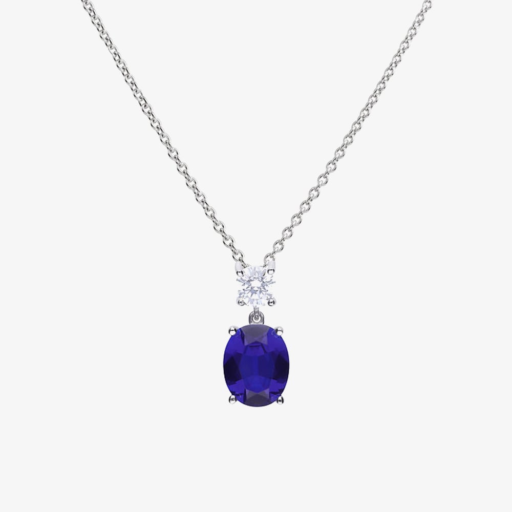 This elegant necklace features a radiant 5mm round white cubic zirconia suspended above a striking 10mm x 8mm oval blue cubic zirconia, creating a refined drop design full of sparkle and colour. Crafted in premium sterling silver and finished with a classic trace chain adjustable from 42–48cm, it’s a beautifully polished piece that adds effortless sophistication to any look.
